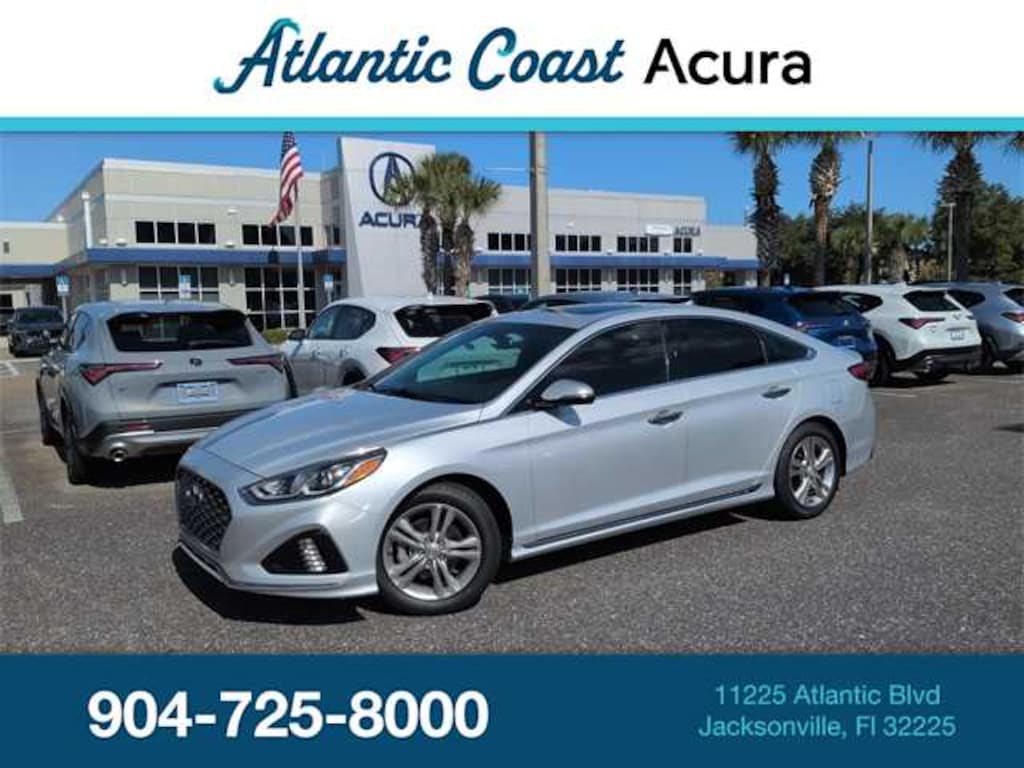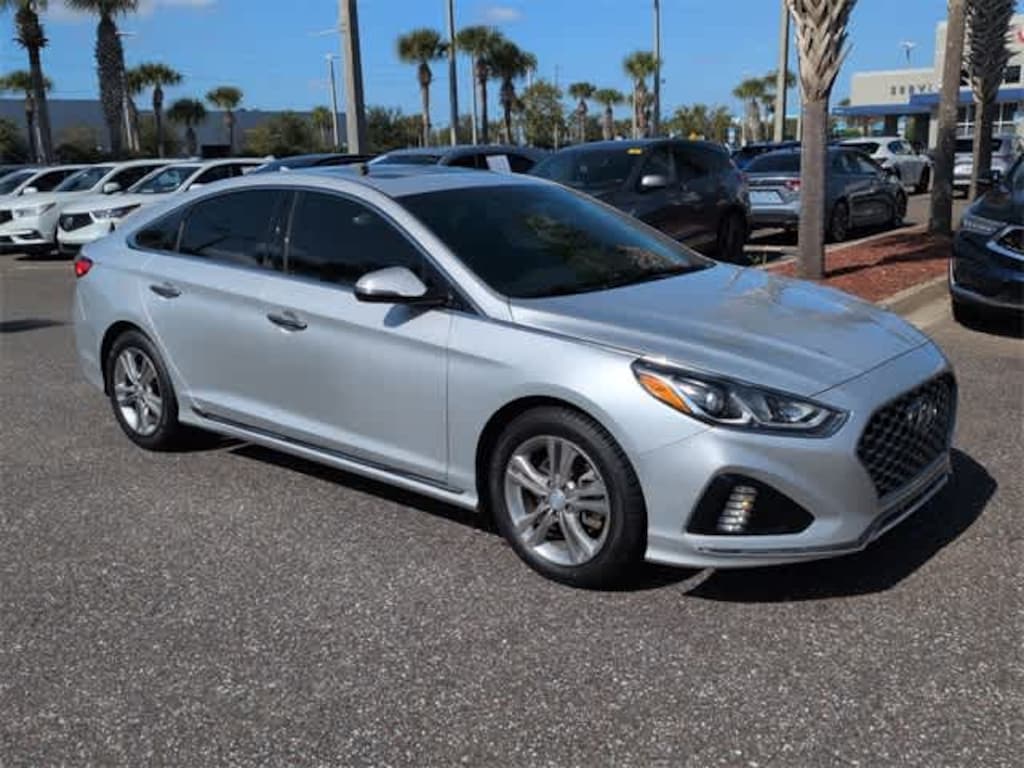 This 2018 Hyundai Sonata Sport in Symphony Silver, features Option Group 01, 4-Wheel Disc Brakes, 6 Speakers, ABS brakes, Air Conditioning, Alloy wheels, AM/FM radio: SiriusXM, Apple CarPlay & Android Auto, Brake assist, Bumpers: body-color, Cargo Net, Carpeted Floor Mats, Delay-off headlights, Driver door bin, Driver vanity mirror, Dual front impact airbags, Dual front side impact airbags, Electronic Stability Control, Emergency communication system: Blue Link, Exterior Parking Camera Rear, First Aid Kit, Four wheel independent suspension, Front anti-roll bar, Front Bucket Seats, Front Center Armrest, Front reading lights, Fully automatic headlights, Heated door mirrors, Heated front seats, Heated Front Sport Seats, Illuminated entry, Knee airbag, Leather Bolster/Cloth Insert Seating Surfaces, Leather Shift Knob, Leather steering wheel, Low tire pressure warning, Occupant sensing airbag, Outside temperature display, Overhead airbag, Overhead console, Panic alarm, Passenger door bin, Passenger vanity mirror, Power door mirrors, Power driver seat, Power moonroof, Power steering, Power windows, Radio data system, Radio: AM/FM/HD/SiriusXM/MP3 Display Audio, Rear anti-roll bar, Rear seat center armrest, Rear window defroster, Remote keyless entry, Reversible Cargo Tray, Security system, Speed control, Speed-sensing steering, Speed-Sensitive Wipers, Split folding rear seat, Sport steering wheel, Steering wheel mounted audio controls, Tachometer, Telescoping steering wheel, Tilt steering wheel, Traction control, Trip computer, Turn signal indicator mirrors, Variably intermittent wipers, and Wheels: 17 x 7.0J Aluminum Alloy: