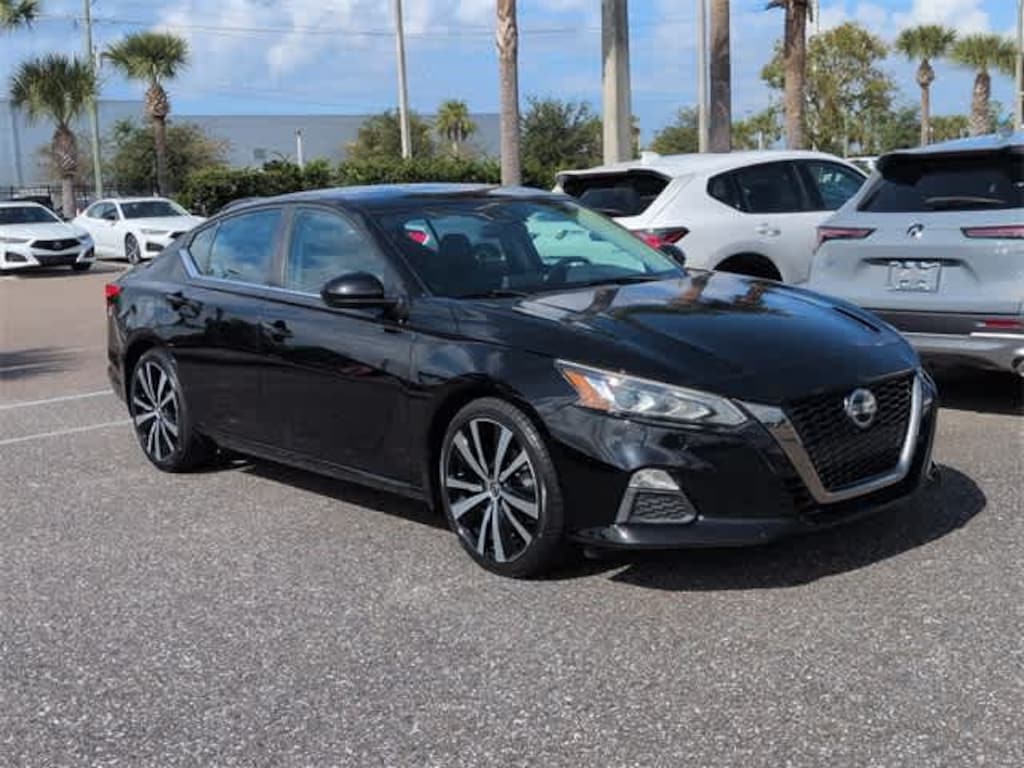 This 2020 Nissan Altima 2.5 SR in Super Black Clearcoat, features 19 Alloy Wheels, 4-Wheel Disc Brakes, 6 Speakers, ABS brakes, Air Conditioning, Alloy wheels, AM/FM radio: SiriusXM, Auto High-beam Headlights, Blind Spot Warning, Body-Colored Splash Guards, Brake assist, Bumpers: body-color, Delay-off headlights, Driver door bin, Driver vanity mirror, Dual front impact airbags, Dual front side impact airbags, Electronic Stability Control, Four wheel independent suspension, Front anti-roll bar, Front Bucket Seats, Front Center Armrest, Front reading lights, Front Sport Bucket Seats, Fully automatic headlights, Illuminated entry, Illuminated Kick Plates, Knee airbag, Leather Shift Knob, Low tire pressure warning, NissanConnect featuring Apple CarPlay and Android Auto, Occupant sensing airbag, Outside temperature display, Overhead airbag, Overhead console, Panic alarm, Passenger door bin, Passenger vanity mirror, Power door mirrors, Power driver seat, Power steering, Power windows, Radio data system, Radio: AM/FM Audio System, Rear anti-roll bar, Rear Parking Sensors, Rear reading lights, Rear seat center armrest, Rear side impact airbag, Rear window defroster, Remote keyless entry, Security system, Speed control, Speed-sensing steering, Speed-Sensitive Wipers, Split folding rear seat, Sport Seat Trim, Sport steering wheel, SR Floor Mats/Trunk Mat/Hideaway Nets, Steering wheel mounted audio controls, Tachometer, Telescoping steering wheel, Tilt steering wheel, Traction control, Trip computer, and Variably intermittent wipers:
