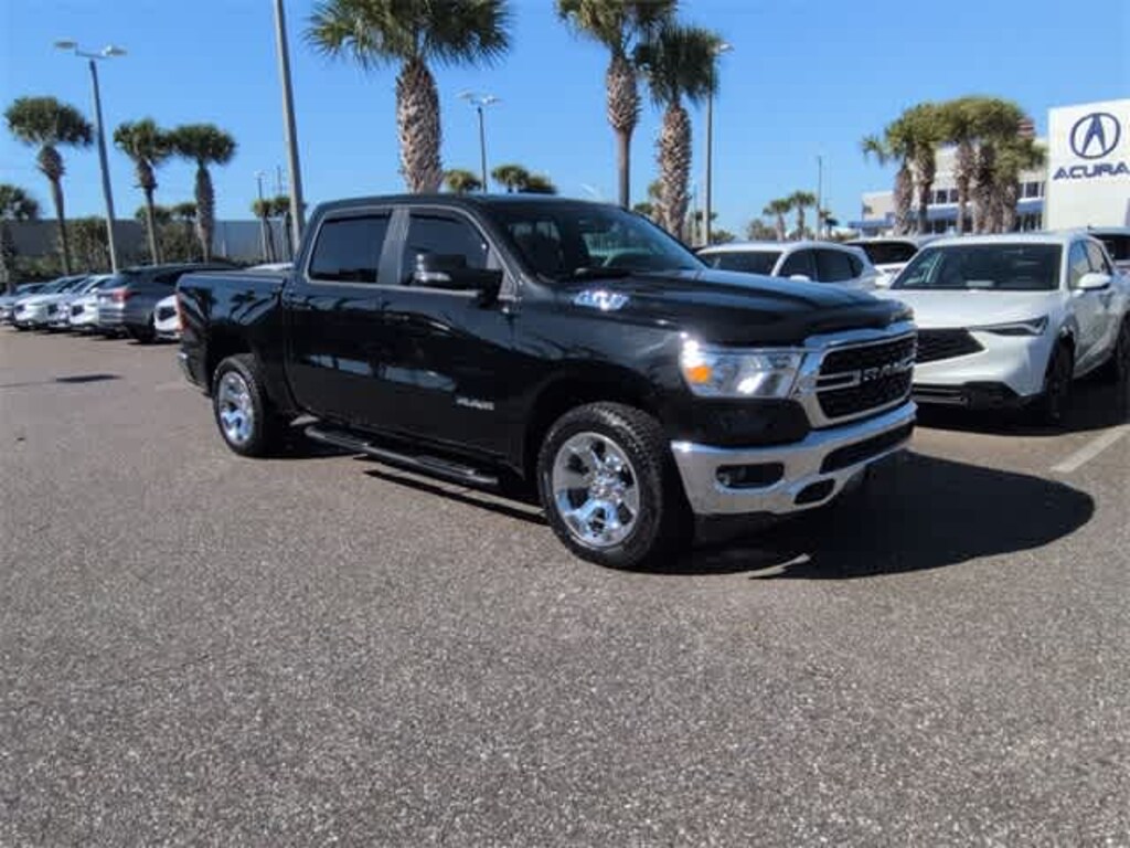 This 2022 Ram 1500 Big Horn/Lone Star in Diamond Black Crystal Pearlcoat, features Big Horn Level 2 Equipment Group (115V Auxiliary Power Outlet, 115V Auxiliary Rear Power Outlet, 2nd Row In Floor Storage Bins, 400W Inverter, 4G LTE Wi-Fi Hot Spot, 8.4 Touchscreen Display, Air Conditioning ATC w/Dual Zone Control, Apple CarPlay, Auto-Dimming Exterior Driver Mirror, Auto-Dimming Rear-View Mirror, Black Exterior Mirrors, Black Premium Power Mirrors, Bluetooth Handsfree Phone & Audio, Class IV Receiver Hitch, Cluster 7.0 TFT Color Display, Connectivity - US/Canada, Convex Wide-Angle Mirror Insert, Exterior Mirrors Courtesy Lamps, Exterior Mirrors w/Heating Element, Exterior Mirrors w/Supplemental Signals, For Details, Visit DriveUconnect.com, Global Telematics Box Module (TBM), Glove Box Lamp, Google Android Auto, GPS Antenna Input, Heated Front Seats, Heated Steering Wheel, Integrated Center Stack Radio, Media Hub w/2 Charge Only USBs, ParkSense Front/Rear Park Assist w/Stop, Power 2-Way Driver Lumbar Adjust, Power 8-Way Driver Seat, Power Adjustable Pedals, Power-Folding Mirrors, Radio: Uconnect 5 W w/8.4 Display, Rear Dome w/On/Off Switch Lamp, Rear Power Sliding Window, Rear Window Defroster, Remote Start System, Security Alarm, SiriusXM Radio Service, SiriusXM Satellite Radio, Sun Visors w/Illuminated Vanity Mirrors, Universal Garage Door Opener, and USB Host Flip), Quick Order Package 23Z Big Horn (Big Horn Badge), 3 Rear Seat Head Restraints, 4 Way Front Headrests, 4-Wheel Disc Brakes, 48V Belt Starter Generator, 6 Speakers, ABS brakes, Air Conditioning, Alloy wheels, AM/FM radio, Brake assist, Bumpers: chrome, Cloth Bench Seat, Compass, Delay-off headlights, Driver door bin, Dual front impact airbags, Dual front side impact airbags, Electronic Stability Control, Emergency communication system: SiriusXM Guardian, Front anti-roll bar, Front Center Armrest w/Storage, Front fog lights, Front reading lights, Front Seat Back Map Pockets, Front wheel independent suspension, Fully automatic headlights, Heated door mirrors, Heavy-Duty Engine Cooling, Illuminated entry, Integrated Voice Command w/Bluetooth, Leather steering wheel, Low tire pressure warning, MOPAR Front & Rear Rubber Floor Mats, Occupant sensing airbag, Outside temperature display, Overhead airbag, Overhead console, Panic alarm, ParkView Rear Back-Up Camera, Passenger door bin, Passenger vanity mirror, Power door mirrors, Power steering, Power windows, Radio data system, Radio: Uconnect 3 w/5 Display, Rear 60/40 Folding Seat, Rear anti-roll bar, Rear seat center armrest, Rear step bumper, Rear Underseat Compartment Storage (DISC), Remote keyless entry, Speed control, Split folding rear seat, Steering wheel mounted audio controls, Tachometer, Telescoping steering wheel, Tilt steering wheel, Traction control, Trip computer, Variably intermittent wipers, Voltmeter, Wheels: 18 x 8 Cast-Aluminum Painted, and Wheels: 20 x 9 Aluminum Chrome Clad (WRK):