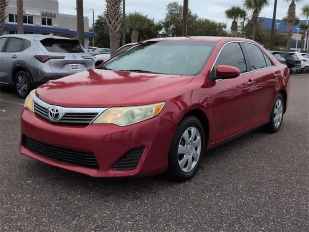 This 2014 Toyota Camry L in Red, features 4-Wheel Disc Brakes, 6 Speakers, 6.5J x 16 Steel Wheels w/Covers, ABS brakes, Air Conditioning, AM/FM radio, Brake assist, Bumpers: body-color, CD player, Driver door bin, Driver vanity mirror, Dual front impact airbags, Dual front side impact airbags, Electronic Stability Control, Fabric Seat Trim, Four wheel independent suspension, Front anti-roll bar, Front Bucket Seats, Front Center Armrest, Front reading lights, Knee airbag, Low tire pressure warning, Occupant sensing airbag, Outside temperature display, Overhead airbag, Overhead console, Passenger door bin, Passenger vanity mirror, Power door mirrors, Power steering, Power windows, Radio data system, Radio: AM/FM/CD Player w/6.1 Touch Screen, Rear anti-roll bar, Rear seat center armrest, Rear side impact airbag, Rear window defroster, Speed control, Speed-sensing steering, Split folding rear seat, Steering wheel mounted audio controls, Tachometer, Telescoping steering wheel, Tilt steering wheel, and Traction control: