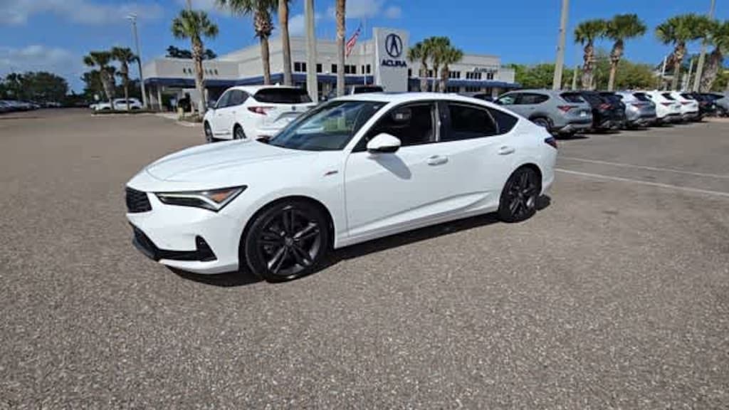 This 2023 Acura Integra A-Spec Tech Package in Platinum White Pearl, features 16 Speakers, 18 Alloy Wheels, 4-Wheel Disc Brakes, ABS brakes, Adaptive suspension, Air Conditioning, Alloy wheels, AM/FM radio: SiriusXM, Apple CarPlay/Android Auto, Auto High-beam Headlights, Auto-dimming Rear-View mirror, Automatic temperature control, Brake assist, Bumpers: body-color, Compass, Delay-off headlights, Driver door bin, Driver vanity mirror, Dual front impact airbags, Dual front side impact airbags, Electronic Stability Control, Emergency communication system: AcuraLink (subscription required), Four wheel independent suspension, Front anti-roll bar, Front Bucket Seats, Front Center Armrest, Front dual zone A/C, Front fog lights, Front reading lights, Fully automatic headlights, Heads-Up Display, Heated door mirrors, Heated Front Bucket Seats, Heated front seats, Illuminated entry, Knee airbag, Lane departure: Lane Keeping Assist System (LKAS) active, Leather Shift Knob, Low tire pressure warning, Memory seat, Occupant sensing airbag, Outside temperature display, Overhead airbag, Overhead console, Panic alarm, Passenger door bin, Passenger vanity mirror, Power door mirrors, Power driver seat, Power moonroof, Power passenger seat, Power steering, Power windows, Radio data system, Radio: ELS Studio 3D Premium Audio System, Rain sensing wipers, Rear anti-roll bar, Rear seat center armrest, Rear side impact airbag, Rear window defroster, Remote keyless entry, Security system, Speed control, Speed-sensing steering, Speed-Sensitive Wipers, Split folding rear seat, Spoiler, Steering wheel mounted audio controls, Suede-Trimmed Seating Surfaces w/Exclusive Stitch, Tachometer, Telescoping steering wheel, Tilt steering wheel, Traction control, Trip computer, Turn signal indicator mirrors, and Variably intermittent wipers: