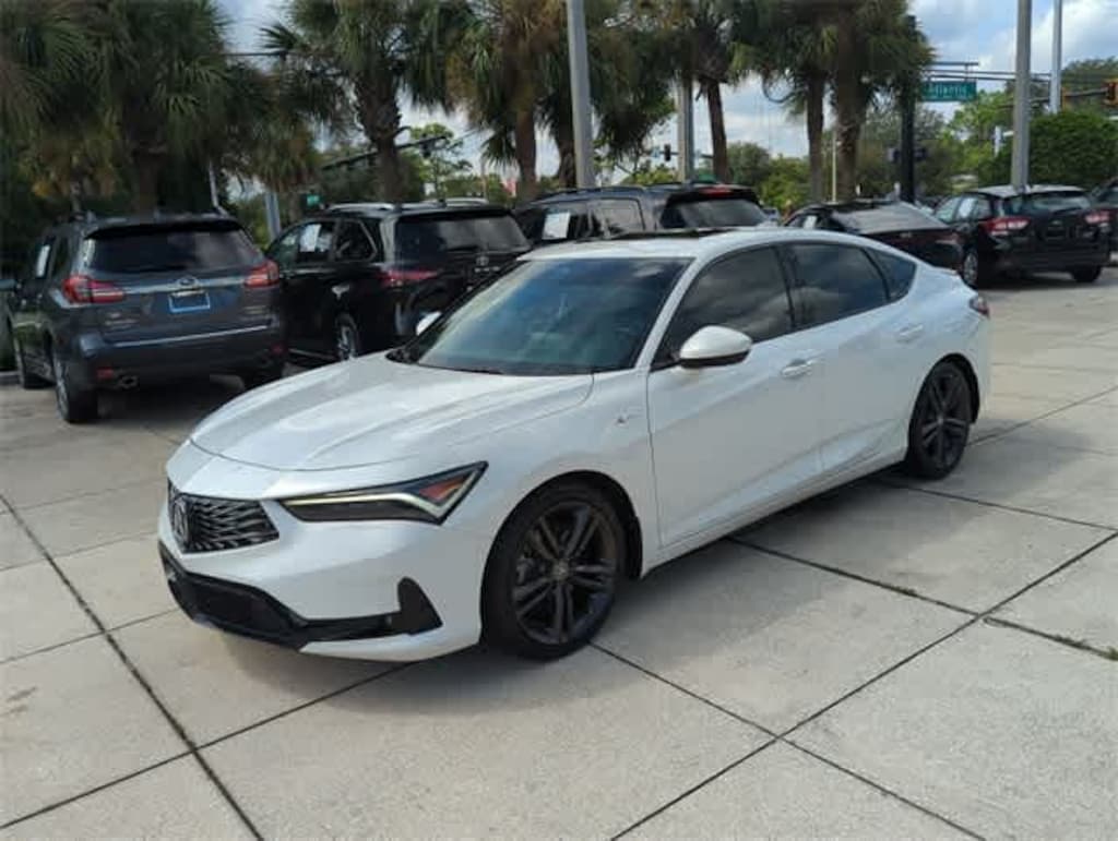 This 2023 Acura Integra A-Spec Package in White, features 18 Alloy Wheels, 4-Wheel Disc Brakes, 8 Speakers, ABS brakes, Air Conditioning, Alloy wheels, AM/FM radio, Apple CarPlay/Android Auto, Auto High-beam Headlights, Auto-dimming Rear-View mirror, Automatic temperature control, Brake assist, Bumpers: body-color, Compass, Delay-off headlights, Driver door bin, Driver vanity mirror, Dual front impact airbags, Dual front side impact airbags, Electronic Stability Control, Four wheel independent suspension, Front anti-roll bar, Front Bucket Seats, Front Center Armrest, Front dual zone A/C, Front fog lights, Front reading lights, Fully automatic headlights, Heated door mirrors, Heated Front Bucket Seats, Heated front seats, Illuminated entry, Knee airbag, Lane departure: Lane Keeping Assist System (LKAS) active, Leather Shift Knob, Leatherette-Trimmed Seating Surfaces, Low tire pressure warning, Occupant sensing airbag, Outside temperature display, Overhead airbag, Overhead console, Panic alarm, Passenger door bin, Passenger vanity mirror, Power door mirrors, Power driver seat, Power moonroof, Power steering, Power windows, Radio data system, Radio: Acura Premium Audio System, Rear anti-roll bar, Rear seat center armrest, Rear side impact airbag, Rear window defroster, Remote keyless entry, Security system, Speed control, Speed-sensing steering, Speed-Sensitive Wipers, Split folding rear seat, Spoiler, Steering wheel mounted audio controls, Tachometer, Telescoping steering wheel, Tilt steering wheel, Traction control, Trip computer, and Variably intermittent wipers: