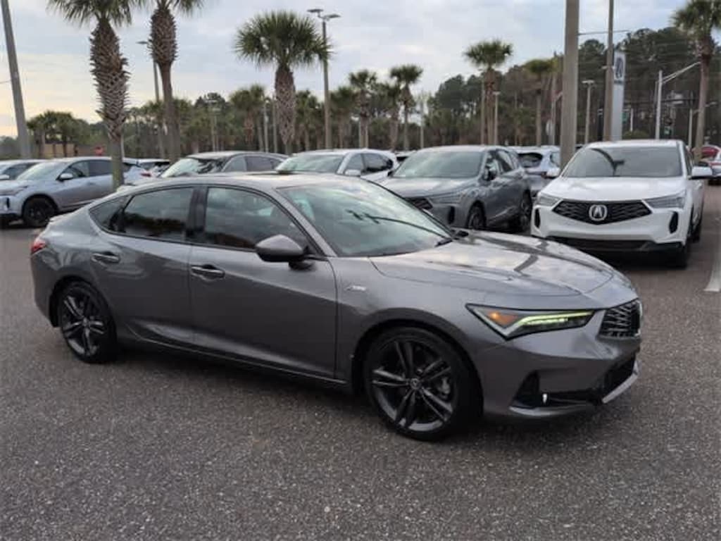 This 2023 Acura Integra A-Spec Package in Gray, features 18 Alloy Wheels, 4-Wheel Disc Brakes, 8 Speakers, ABS brakes, Air Conditioning, Alloy wheels, AM/FM radio, Apple CarPlay/Android Auto, Auto High-beam Headlights, Auto-dimming Rear-View mirror, Automatic temperature control, Brake assist, Bumpers: body-color, Compass, Delay-off headlights, Driver door bin, Driver vanity mirror, Dual front impact airbags, Dual front side impact airbags, Electronic Stability Control, Four wheel independent suspension, Front anti-roll bar, Front Bucket Seats, Front Center Armrest, Front dual zone A/C, Front fog lights, Front reading lights, Fully automatic headlights, Heated door mirrors, Heated Front Bucket Seats, Heated front seats, Illuminated entry, Knee airbag, Lane departure: Lane Keeping Assist System (LKAS) active, Leather Shift Knob, Leatherette-Trimmed Seating Surfaces, Low tire pressure warning, Occupant sensing airbag, Outside temperature display, Overhead airbag, Overhead console, Panic alarm, Passenger door bin, Passenger vanity mirror, Power door mirrors, Power driver seat, Power moonroof, Power steering, Power windows, Radio data system, Radio: Acura Premium Audio System, Rear anti-roll bar, Rear seat center armrest, Rear side impact airbag, Rear window defroster, Remote keyless entry, Security system, Speed control, Speed-sensing steering, Speed-Sensitive Wipers, Split folding rear seat, Spoiler, Steering wheel mounted audio controls, Tachometer, Telescoping steering wheel, Tilt steering wheel, Traction control, Trip computer, and Variably intermittent wipers: