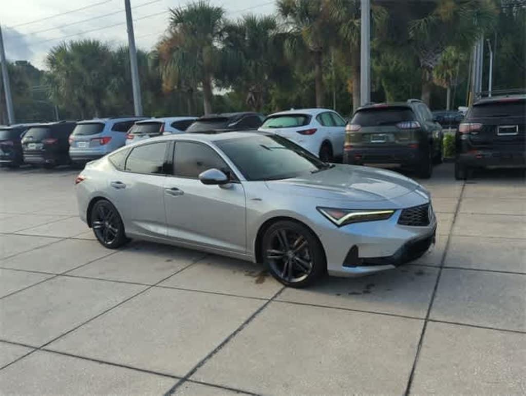 This 2023 Acura Integra A-Spec Tech Package in Silver, features 16 Speakers, 18 Alloy Wheels, 4-Wheel Disc Brakes, ABS brakes, Adaptive suspension, Air Conditioning, Alloy wheels, AM/FM radio: SiriusXM, Apple CarPlay/Android Auto, Auto High-beam Headlights, Auto-dimming Rear-View mirror, Automatic temperature control, Brake assist, Bumpers: body-color, Compass, Delay-off headlights, Driver door bin, Driver vanity mirror, Dual front impact airbags, Dual front side impact airbags, Electronic Stability Control, Emergency communication system: AcuraLink (subscription required), Four wheel independent suspension, Front anti-roll bar, Front Bucket Seats, Front Center Armrest, Front dual zone A/C, Front fog lights, Front reading lights, Fully automatic headlights, Heads-Up Display, Heated door mirrors, Heated Front Bucket Seats, Heated front seats, Illuminated entry, Knee airbag, Lane departure: Lane Keeping Assist System (LKAS) active, Leather Shift Knob, Low tire pressure warning, Memory seat, Occupant sensing airbag, Outside temperature display, Overhead airbag, Overhead console, Panic alarm, Passenger door bin, Passenger vanity mirror, Power door mirrors, Power driver seat, Power moonroof, Power passenger seat, Power steering, Power windows, Radio data system, Radio: ELS Studio 3D Premium Audio System, Rain sensing wipers, Rear anti-roll bar, Rear seat center armrest, Rear side impact airbag, Rear window defroster, Remote keyless entry, Security system, Speed control, Speed-sensing steering, Speed-Sensitive Wipers, Split folding rear seat, Spoiler, Steering wheel mounted audio controls, Suede-Trimmed Seating Surfaces w/Exclusive Stitch, Tachometer, Telescoping steering wheel, Tilt steering wheel, Traction control, Trip computer, Turn signal indicator mirrors, and Variably intermittent wipers: