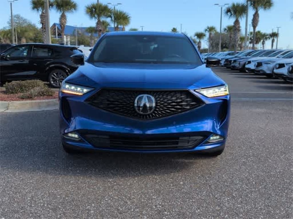 This 2023 Acura MDX A-Spec in Blue, features 16 Speakers, 3rd row seats: split-bench, 4-Wheel Disc Brakes, 4.17 Axle Ratio, A/V remote: CabinControl, ABS brakes, Air Conditioning, Alloy wheels, AM/FM radio: SiriusXM, Anti-whiplash front head restraints, Apple CarPlay/Android Auto, Audio memory, Auto High-beam Headlights, Auto tilt-away steering wheel, Auto-dimming Rear-View mirror, Automatic temperature control, Brake assist, Bumpers: body-color, Compass, Delay-off headlights, Driver door bin, Driver vanity mirror, Dual front impact airbags, Dual front side impact airbags, Electronic Stability Control, Emergency communication system: AcuraLink, Exterior Parking Camera Rear, Four wheel independent suspension, Front anti-roll bar, Front Bucket Seats, Front Center Armrest, Front dual zone A/C, Front fog lights, Front reading lights, Fully automatic headlights, Garage door transmitter: HomeLink, Heated & Ventilated Front Sport Seats, Heated door mirrors, Heated front seats, HVAC memory, Illuminated entry, Knee airbag, Lane departure: Lane Keeping Assist System (LKAS) active, Leather steering wheel, Low tire pressure warning, Memory seat, Navigation system: Acura Navigation System with 3D View, Occupant sensing airbag, Outside temperature display, Overhead airbag, Overhead console, Panic alarm, Passenger door bin, Passenger vanity mirror, Perforated Premium Milano Leather Trimmed Seats, Power door mirrors, Power driver seat, Power Liftgate, Power moonroof, Power passenger seat, Power steering, Power windows, Premium audio system: Acura/ELS Studio 3D, Radio data system, Radio: ELS Studio 3D Premium Audio System, Rain sensing wipers, Rear air conditioning, Rear anti-roll bar, Rear reading lights, Rear seat center armrest, Rear window defroster, Rear window wiper, Remote keyless entry, Security system, Speed control, Speed-sensing steering, Speed-Sensitive Wipers, Split folding rear seat, Spoiler, Sport steering wheel, Steering wheel memory, Steering wheel mounted audio controls, Tachometer, Telescoping steering wheel, Tilt steering wheel, Traction control, Trip computer, Turn signal indicator mirrors, Variably intermittent wipers, Ventilated front seats, and Wheels: 20 x 9 Aluminum Alloy: