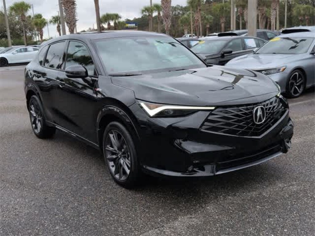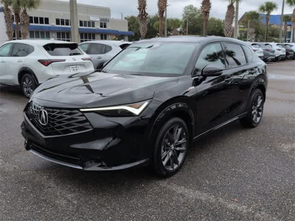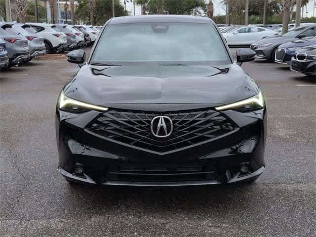 This 2025 Acura ADX A-Spec Package in Crystal Black Pearl, features 4-Wheel Disc Brakes, 8 Speakers, ABS brakes, Air Conditioning, Alloy wheels, AM/FM radio, Apple CarPlay/Android Auto, Auto High-beam Headlights, Auto-dimming Rear-View mirror, Automatic temperature control, Brake assist, Bumpers: body-color, Delay-off headlights, Driver door bin, Driver vanity mirror, Dual front impact airbags, Dual front side impact airbags, Electronic Stability Control, Emergency communication system: AcuraLink, Exterior Parking Camera Rear, Four wheel independent suspension, Front anti-roll bar, Front Bucket Seats, Front Center Armrest, Front dual zone A/C, Front fog lights, Front reading lights, Fully automatic headlights, Heated door mirrors, Heated front seats, Illuminated entry, Knee airbag, Lane departure: Lane Keeping Assist System (LKAS) active, Leather Shift Knob, Leather steering wheel, Low tire pressure warning, Occupant sensing airbag, Outside temperature display, Overhead airbag, Overhead console, Panic alarm, Passenger door bin, Passenger vanity mirror, Power door mirrors, Power driver seat, Power Liftgate, Power moonroof: Panoramic, Power passenger seat, Power steering, Power windows, Radio data system, Radio: AM/FM Acura Premium Audio System, Rear anti-roll bar, Rear reading lights, Rear seat center armrest, Rear side impact airbag, Rear window defroster, Rear window wiper, Remote keyless entry, Security system, Speed control, Speed-sensing steering, Split folding rear seat, Spoiler, Sport steering wheel, Steering wheel mounted audio controls, Tachometer, Telescoping steering wheel, Tilt steering wheel, Traction control, Trip computer, Turn signal indicator mirrors, Variably intermittent wipers, Ventilated front seats, and Wheels: 19 x 8J Aluminum Alloy: