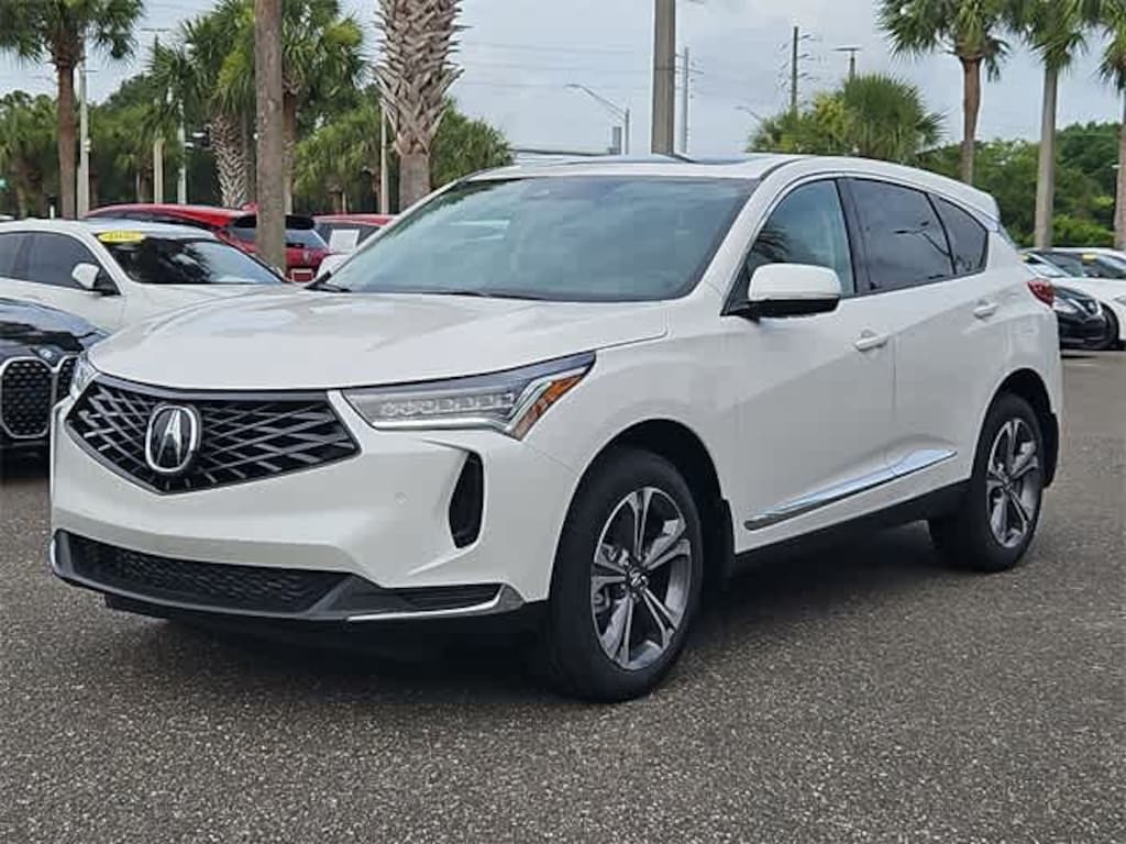 This 2025 Acura RDX Technology Package in Platinum White Pearl, features 12 Speakers, 4-Wheel Disc Brakes, ABS brakes, Air Conditioning, Alloy wheels, AM/FM radio: SiriusXM, Apple CarPlay/Android Auto, Auto High-beam Headlights, Auto-dimming Rear-View mirror, Automatic temperature control, Brake assist, Bumpers: body-color, Compass, Delay-off headlights, Driver door bin, Driver vanity mirror, Dual front impact airbags, Dual front side impact airbags, Electronic Stability Control, Emergency communication system: AcuraLink, Exterior Parking Camera Rear, Four wheel independent suspension, Front anti-roll bar, Front Bucket Seats, Front Center Armrest, Front dual zone A/C, Front reading lights, Fully automatic headlights, Garage door transmitter: HomeLink, Heated door mirrors, Heated front seats, Heated Front Sport Seats, Illuminated entry, Knee airbag, Lane departure: Lane Keeping Assist System (LKAS) active, Low tire pressure warning, Memory seat, Navigation system: Acura Navigation System with 3D View, Occupant sensing airbag, Outside temperature display, Overhead airbag, Overhead console, Panic alarm, Passenger door bin, Passenger vanity mirror, Perforated Milano Premium Leather-Trimmed Interior, Power door mirrors, Power driver seat, Power Liftgate, Power moonroof, Power passenger seat, Power steering, Power windows, Radio data system, Radio: ELS Studio Premium Audio System, Rear anti-roll bar, Rear reading lights, Rear seat center armrest, Rear window defroster, Rear window wiper, Remote keyless entry, Security system, Speed control, Speed-sensing steering, Split folding rear seat, Spoiler, Steering wheel mounted audio controls, Tachometer, Telescoping steering wheel, Tilt steering wheel, Traction control, Trip computer, Turn signal indicator mirrors, Variably intermittent wipers, and Wheels: 19 x 8.0J Shark Gray Machine-Finished: AWD