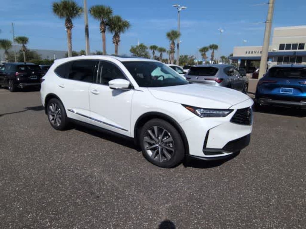 This 2026 Acura MDX Technology Package in White, features 19 Speakers, 3rd row seats: split-bench, 4-Wheel Disc Brakes, ABS brakes, Air Conditioning, Alloy wheels, AM/FM radio, Anti-whiplash front head restraints, Apple CarPlay/Android Auto, Audio memory, Auto High-beam Headlights, Auto tilt-away steering wheel, Auto-dimming Rear-View mirror, Automatic temperature control, Brake assist, Bumpers: body-color, Compass, Delay-off headlights, Driver door bin, Driver vanity mirror, Dual front impact airbags, Dual front side impact airbags, Electronic Stability Control, Emergency communication system: AcuraLink, Exterior Parking Camera Rear, Four wheel independent suspension, Front anti-roll bar, Front Bucket Seats, Front Center Armrest, Front dual zone A/C, Front reading lights, Fully automatic headlights, Garage door transmitter: HomeLink, Heated door mirrors, Heated front seats, Heated Front Sport Seats, HVAC memory, Illuminated entry, Knee airbag, Lane departure: Lane Keeping Assist System (LKAS) active, Leather steering wheel, Low tire pressure warning, Memory seat, Navigation system: Google built-in (3-Years Unlimited Data Plan for In-Vehicle Apps), Occupant sensing airbag, Outside temperature display, Overhead airbag, Overhead console, Panic alarm, Passenger door bin, Passenger vanity mirror, Perforated Premium Milano Leather Trimmed Seats, Power door mirrors, Power driver seat, Power Liftgate, Power moonroof, Power passenger seat, Power steering, Power windows, Premium audio system: Acura/ELS Surround, Radio data system, Radio: Bang & Olufsen Premium Audio System, Rain sensing wipers, Rear air conditioning, Rear anti-roll bar, Rear reading lights, Rear seat center armrest, Rear window defroster, Rear window wiper, Remote keyless entry, Security system, Speed control, Speed-sensing steering, Speed-Sensitive Wipers, Split folding rear seat, Spoiler, Steering wheel memory, Steering wheel mounted audio controls, Tachometer, Telescoping steering wheel, Tilt steering wheel, Traction control, Trip computer, Turn signal indicator mirrors, Variably intermittent wipers, and Wheels: 20 x 9J Aluminum Alloy: