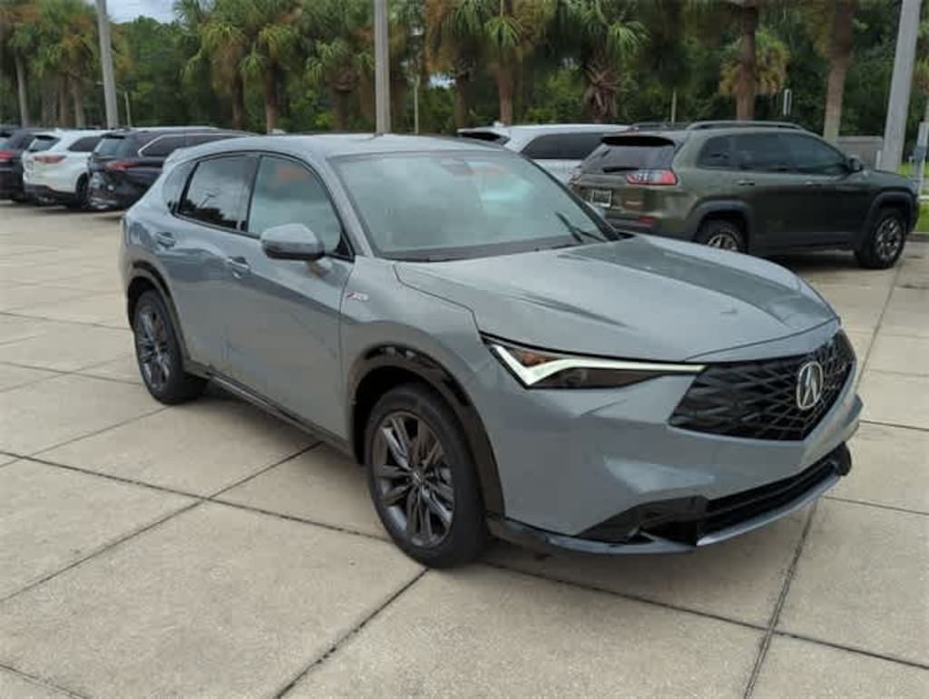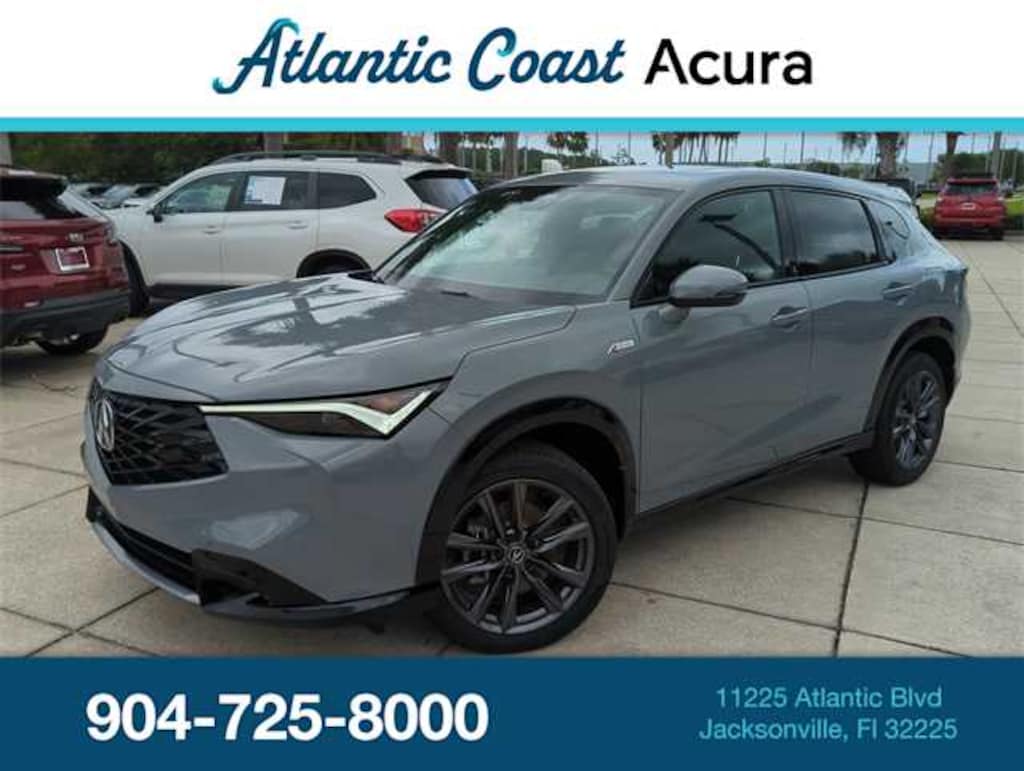 This 2025 Acura ADX A-Spec Package in Urban Gray Pearl, features 4-Wheel Disc Brakes, 8 Speakers, ABS brakes, Air Conditioning, Alloy wheels, AM/FM radio, Apple CarPlay/Android Auto, Auto High-beam Headlights, Auto-dimming Rear-View mirror, Automatic temperature control, Brake assist, Bumpers: body-color, Delay-off headlights, Driver door bin, Driver vanity mirror, Dual front impact airbags, Dual front side impact airbags, Electronic Stability Control, Emergency communication system: AcuraLink, Exterior Parking Camera Rear, Four wheel independent suspension, Front anti-roll bar, Front Bucket Seats, Front Center Armrest, Front dual zone A/C, Front fog lights, Front reading lights, Fully automatic headlights, Heated & Ventilated Front Bucket Seats, Heated door mirrors, Heated front seats, Illuminated entry, Knee airbag, Lane departure: Lane Keeping Assist System (LKAS) active, Leather Shift Knob, Leather steering wheel, Leatherette Trimmed Seats w/ Microsuede Accents, Low tire pressure warning, Occupant sensing airbag, Outside temperature display, Overhead airbag, Overhead console, Panic alarm, Passenger door bin, Passenger vanity mirror, Power door mirrors, Power driver seat, Power Liftgate, Power moonroof: Panoramic, Power passenger seat, Power steering, Power windows, Radio data system, Radio: AM/FM Acura Premium Audio System, Rear anti-roll bar, Rear reading lights, Rear seat center armrest, Rear side impact airbag, Rear window defroster, Rear window wiper, Remote keyless entry, Security system, Speed control, Speed-sensing steering, Split folding rear seat, Spoiler, Sport steering wheel, Steering wheel mounted audio controls, Tachometer, Telescoping steering wheel, Tilt steering wheel, Traction control, Trip computer, Turn signal indicator mirrors, Variably intermittent wipers, Ventilated front seats, and Wheels: 19 x 8J Aluminum Alloy: AWD