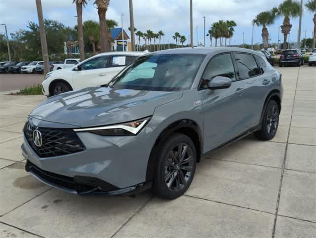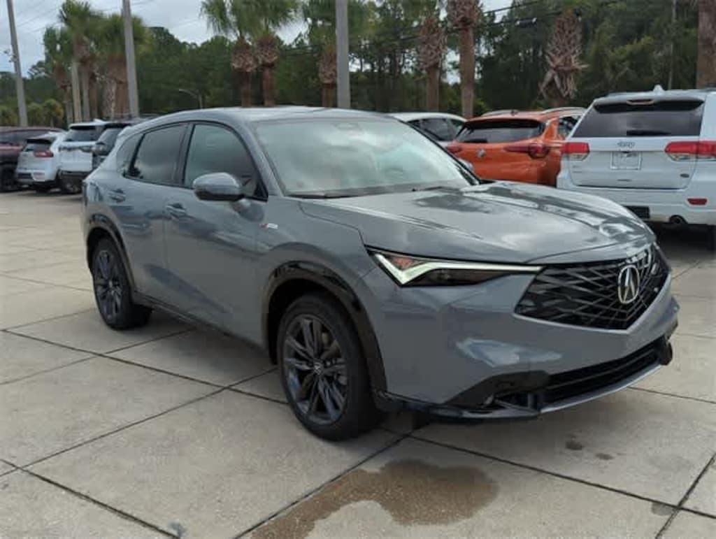 This 2025 Acura ADX A-Spec Package in Gx, features 4-Wheel Disc Brakes, 8 Speakers, ABS brakes, Air Conditioning, Alloy wheels, AM/FM radio, Apple CarPlay/Android Auto, Auto High-beam Headlights, Auto-dimming Rear-View mirror, Automatic temperature control, Brake assist, Bumpers: body-color, Delay-off headlights, Driver door bin, Driver vanity mirror, Dual front impact airbags, Dual front side impact airbags, Electronic Stability Control, Emergency communication system: AcuraLink, Exterior Parking Camera Rear, Four wheel independent suspension, Front anti-roll bar, Front Bucket Seats, Front Center Armrest, Front dual zone A/C, Front fog lights, Front reading lights, Fully automatic headlights, Heated & Ventilated Front Bucket Seats, Heated door mirrors, Heated front seats, Illuminated entry, Knee airbag, Lane departure: Lane Keeping Assist System (LKAS) active, Leather Shift Knob, Leather steering wheel, Leatherette Trimmed Seats w/ Microsuede Accents, Low tire pressure warning, Occupant sensing airbag, Outside temperature display, Overhead airbag, Overhead console, Panic alarm, Passenger door bin, Passenger vanity mirror, Power door mirrors, Power driver seat, Power Liftgate, Power moonroof: Panoramic, Power passenger seat, Power steering, Power windows, Radio data system, Radio: AM/FM Acura Premium Audio System, Rear anti-roll bar, Rear reading lights, Rear seat center armrest, Rear side impact airbag, Rear window defroster, Rear window wiper, Remote keyless entry, Security system, Speed control, Speed-sensing steering, Split folding rear seat, Spoiler, Sport steering wheel, Steering wheel mounted audio controls, Tachometer, Telescoping steering wheel, Tilt steering wheel, Traction control, Trip computer, Turn signal indicator mirrors, Variably intermittent wipers, Ventilated front seats, and Wheels: 19 x 8J Aluminum Alloy: FWD