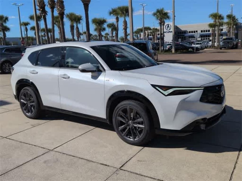 This 2025 Acura ADX A-Spec Package in Wv, features 4-Wheel Disc Brakes, 8 Speakers, ABS brakes, Air Conditioning, Alloy wheels, AM/FM radio, Apple CarPlay/Android Auto, Auto High-beam Headlights, Auto-dimming Rear-View mirror, Automatic temperature control, Brake assist, Bumpers: body-color, Delay-off headlights, Driver door bin, Driver vanity mirror, Dual front impact airbags, Dual front side impact airbags, Electronic Stability Control, Emergency communication system: AcuraLink, Exterior Parking Camera Rear, Four wheel independent suspension, Front anti-roll bar, Front Bucket Seats, Front Center Armrest, Front dual zone A/C, Front fog lights, Front reading lights, Fully automatic headlights, Heated & Ventilated Front Bucket Seats, Heated door mirrors, Heated front seats, Illuminated entry, Knee airbag, Lane departure: Lane Keeping Assist System (LKAS) active, Leather Shift Knob, Leather steering wheel, Leatherette Trimmed Seats w/ Microsuede Accents, Low tire pressure warning, Occupant sensing airbag, Outside temperature display, Overhead airbag, Overhead console, Panic alarm, Passenger door bin, Passenger vanity mirror, Power door mirrors, Power driver seat, Power Liftgate, Power moonroof: Panoramic, Power passenger seat, Power steering, Power windows, Radio data system, Radio: AM/FM Acura Premium Audio System, Rear anti-roll bar, Rear reading lights, Rear seat center armrest, Rear side impact airbag, Rear window defroster, Rear window wiper, Remote keyless entry, Security system, Speed control, Speed-sensing steering, Split folding rear seat, Spoiler, Sport steering wheel, Steering wheel mounted audio controls, Tachometer, Telescoping steering wheel, Tilt steering wheel, Traction control, Trip computer, Turn signal indicator mirrors, Variably intermittent wipers, Ventilated front seats, and Wheels: 19 x 8J Aluminum Alloy: FWD
