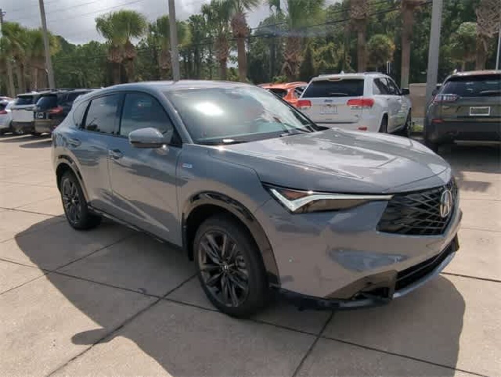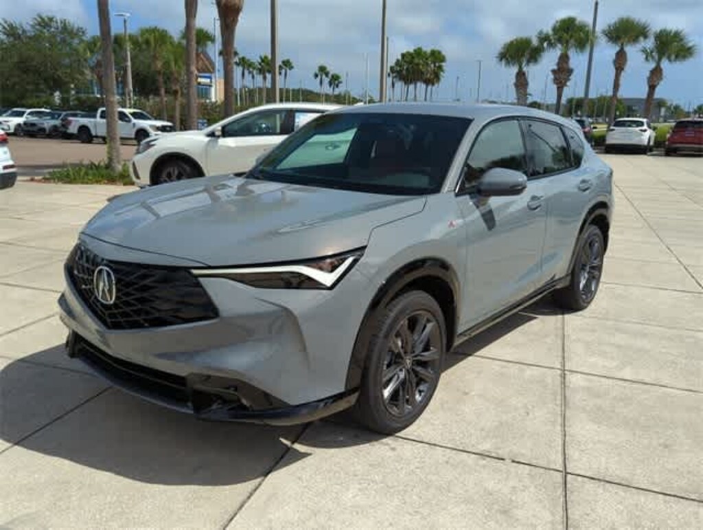 This 2025 Acura ADX A-Spec Package in Gx, features 4-Wheel Disc Brakes, 8 Speakers, ABS brakes, Air Conditioning, Alloy wheels, AM/FM radio, Apple CarPlay/Android Auto, Auto High-beam Headlights, Auto-dimming Rear-View mirror, Automatic temperature control, Brake assist, Bumpers: body-color, Delay-off headlights, Driver door bin, Driver vanity mirror, Dual front impact airbags, Dual front side impact airbags, Electronic Stability Control, Emergency communication system: AcuraLink, Exterior Parking Camera Rear, Four wheel independent suspension, Front anti-roll bar, Front Bucket Seats, Front Center Armrest, Front dual zone A/C, Front fog lights, Front reading lights, Fully automatic headlights, Heated & Ventilated Front Bucket Seats, Heated door mirrors, Heated front seats, Illuminated entry, Knee airbag, Lane departure: Lane Keeping Assist System (LKAS) active, Leather Shift Knob, Leather steering wheel, Leatherette Trimmed Seats w/ Microsuede Accents, Low tire pressure warning, Occupant sensing airbag, Outside temperature display, Overhead airbag, Overhead console, Panic alarm, Passenger door bin, Passenger vanity mirror, Power door mirrors, Power driver seat, Power Liftgate, Power moonroof: Panoramic, Power passenger seat, Power steering, Power windows, Radio data system, Radio: AM/FM Acura Premium Audio System, Rear anti-roll bar, Rear reading lights, Rear seat center armrest, Rear side impact airbag, Rear window defroster, Rear window wiper, Remote keyless entry, Security system, Speed control, Speed-sensing steering, Split folding rear seat, Spoiler, Sport steering wheel, Steering wheel mounted audio controls, Tachometer, Telescoping steering wheel, Tilt steering wheel, Traction control, Trip computer, Turn signal indicator mirrors, Variably intermittent wipers, Ventilated front seats, and Wheels: 19 x 8J Aluminum Alloy: AWD