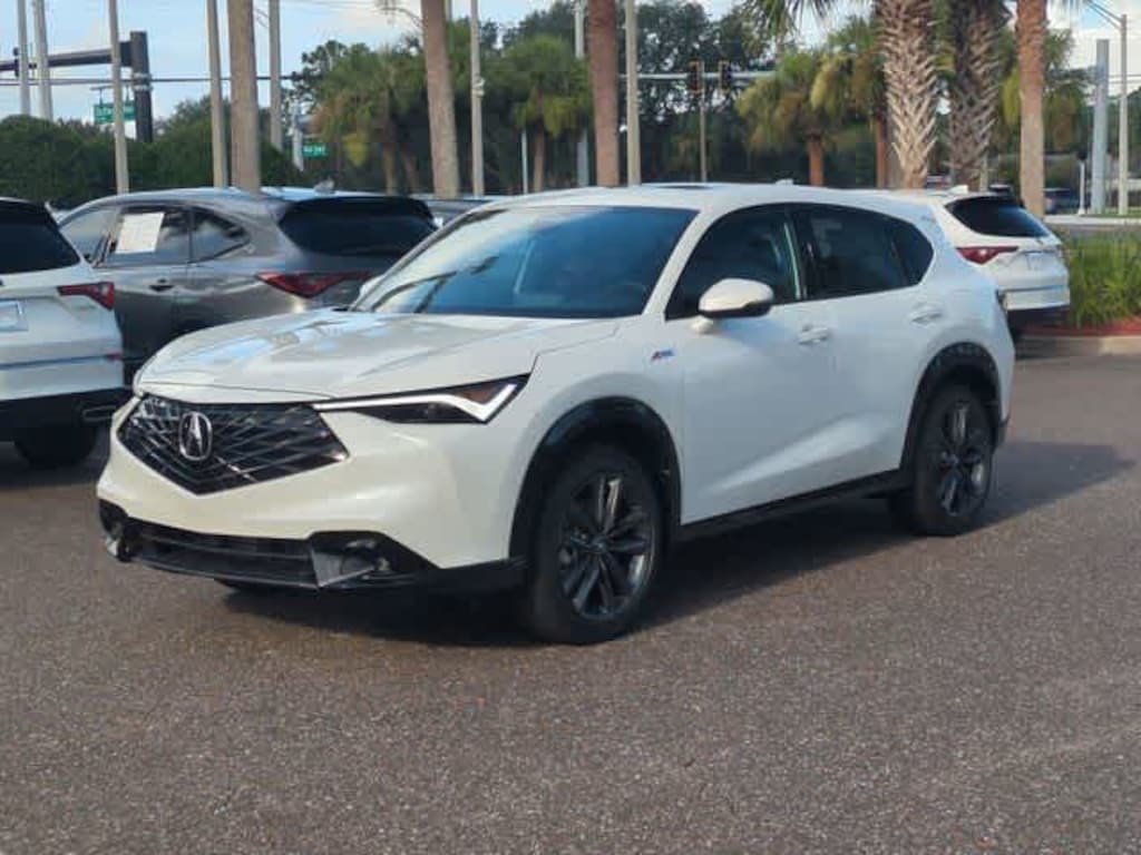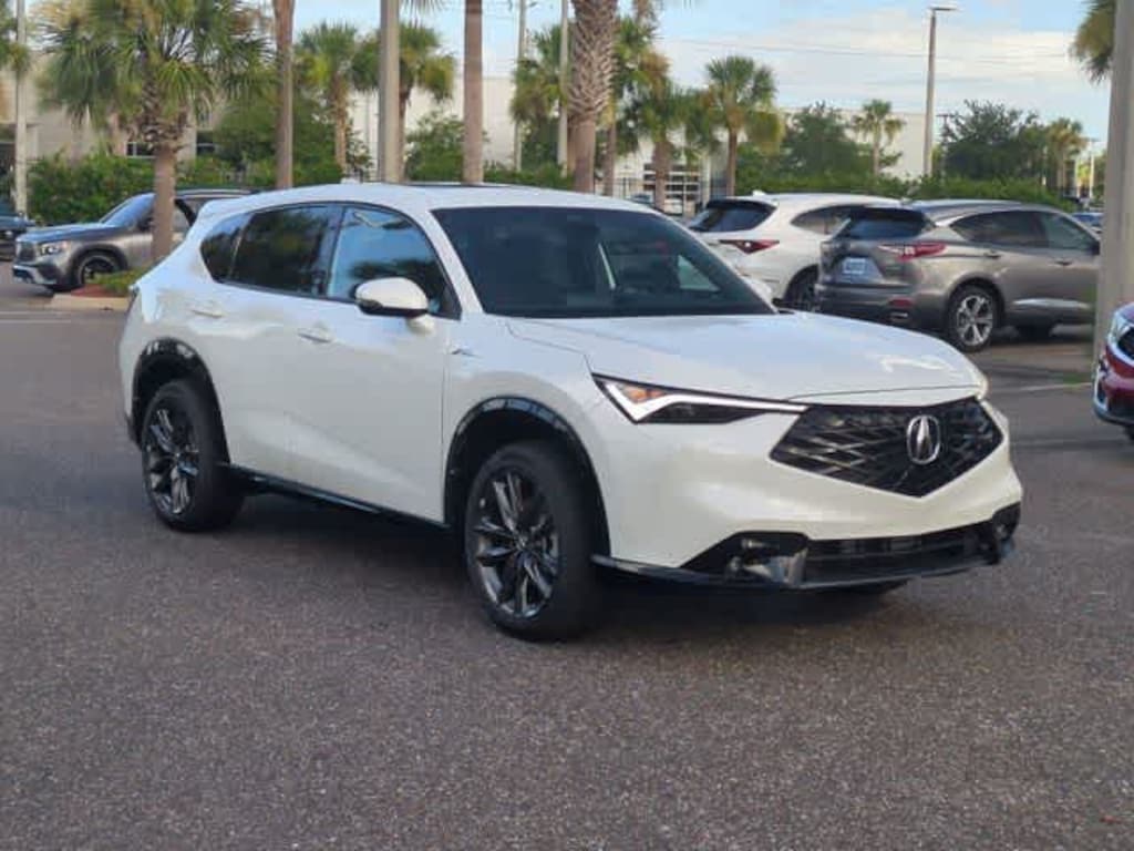 This 2025 Acura ADX A-Spec Package in Platinum White Pearl, features 4-Wheel Disc Brakes, 8 Speakers, ABS brakes, Air Conditioning, Alloy wheels, AM/FM radio, Apple CarPlay/Android Auto, Auto High-beam Headlights, Auto-dimming Rear-View mirror, Automatic temperature control, Brake assist, Bumpers: body-color, Delay-off headlights, Driver door bin, Driver vanity mirror, Dual front impact airbags, Dual front side impact airbags, Electronic Stability Control, Emergency communication system: AcuraLink, Exterior Parking Camera Rear, Four wheel independent suspension, Front anti-roll bar, Front Bucket Seats, Front Center Armrest, Front dual zone A/C, Front fog lights, Front reading lights, Fully automatic headlights, Heated and Ventilated Front Bucket Seats, Heated door mirrors, Heated front seats, Illuminated entry, Knee airbag, Lane departure: Lane Keeping Assist System (LKAS) active, Leather Shift Knob, Leather steering wheel, Leatherette Trimmed Seats with Microsuede Accents, Low tire pressure warning, Occupant sensing airbag, Outside temperature display, Overhead airbag, Overhead console, Panic alarm, Passenger door bin, Passenger vanity mirror, Power door mirrors, Power driver seat, Power Liftgate, Power moonroof: Panoramic, Power passenger seat, Power steering, Power windows, Radio data system, Radio: AM/FM Acura Premium Audio System, Rear anti-roll bar, Rear reading lights, Rear seat center armrest, Rear side impact airbag, Rear window defroster, Rear window wiper, Remote keyless entry, Security system, Speed control, Speed-sensing steering, Speed-Sensitive Wipers, Split folding rear seat, Spoiler, Sport steering wheel, Steering wheel mounted audio controls, Tachometer, Telescoping steering wheel, Tilt steering wheel, Traction control, Trip computer, Turn signal indicator mirrors, Variably intermittent wipers, Ventilated front seats, and Wheels: 19 x 8J Aluminum Alloy: AWD
