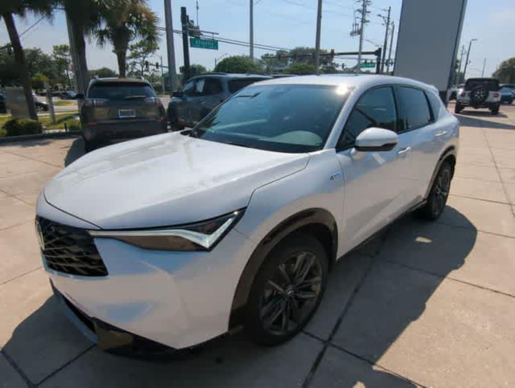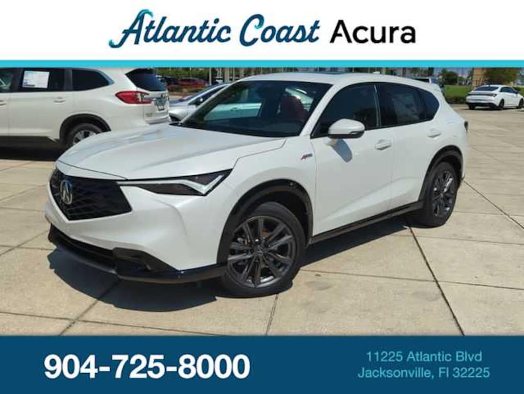 This 2025 Acura ADX A-Spec Package in Platinum White Pearl, features 4-Wheel Disc Brakes, 8 Speakers, ABS brakes, Air Conditioning, Alloy wheels, AM/FM radio, Apple CarPlay/Android Auto, Auto High-beam Headlights, Auto-dimming Rear-View mirror, Automatic temperature control, Brake assist, Bumpers: body-color, Delay-off headlights, Driver door bin, Driver vanity mirror, Dual front impact airbags, Dual front side impact airbags, Electronic Stability Control, Emergency communication system: AcuraLink, Exterior Parking Camera Rear, Four wheel independent suspension, Front anti-roll bar, Front Bucket Seats, Front Center Armrest, Front dual zone A/C, Front fog lights, Front reading lights, Fully automatic headlights, Heated and Ventilated Front Bucket Seats, Heated door mirrors, Heated front seats, Illuminated entry, Knee airbag, Lane departure: Lane Keeping Assist System (LKAS) active, Leather Shift Knob, Leather steering wheel, Leatherette Trimmed Seats with Microsuede Accents, Low tire pressure warning, Occupant sensing airbag, Outside temperature display, Overhead airbag, Overhead console, Panic alarm, Passenger door bin, Passenger vanity mirror, Power door mirrors, Power driver seat, Power Liftgate, Power moonroof: Panoramic, Power passenger seat, Power steering, Power windows, Radio data system, Radio: AM/FM Acura Premium Audio System, Rear anti-roll bar, Rear reading lights, Rear seat center armrest, Rear side impact airbag, Rear window defroster, Rear window wiper, Remote keyless entry, Security system, Speed control, Speed-sensing steering, Speed-Sensitive Wipers, Split folding rear seat, Spoiler, Sport steering wheel, Steering wheel mounted audio controls, Tachometer, Telescoping steering wheel, Tilt steering wheel, Traction control, Trip computer, Turn signal indicator mirrors, Variably intermittent wipers, Ventilated front seats, and Wheels: 19 x 8J Aluminum Alloy: FWD