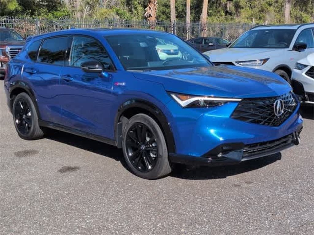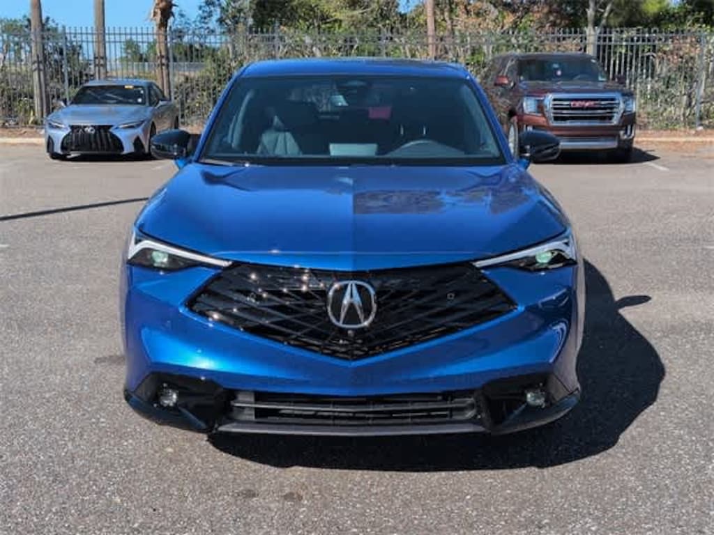 This 2025 Acura ADX A-Spec Advance Package in Adriatic Blue Sea Metallic, features 15 Speakers, 4-Wheel Disc Brakes, ABS brakes, Air Conditioning, Alloy wheels, Apple CarPlay/Android Auto, Auto High-beam Headlights, Auto-dimming Rear-View mirror, Automatic temperature control, Brake assist, Bumpers: body-color, Delay-off headlights, Driver door bin, Driver vanity mirror, Dual front impact airbags, Dual front side impact airbags, Electronic Stability Control, Emergency communication system: AcuraLink, Exterior Parking Camera Rear, Four wheel independent suspension, Front anti-roll bar, Front Bucket Seats, Front Center Armrest, Front dual zone A/C, Front fog lights, Front reading lights, Fully automatic headlights, Heated and Ventilated Front Bucket Seats, Heated door mirrors, Heated front seats, Heated steering wheel, Illuminated entry, Knee airbag, Lane departure: Lane Keeping Assist System (LKAS) active, Leather Shift Knob, Leather steering wheel, Leather Trimmed Seats, Low tire pressure warning, Memory seat, Navigation system: Google built-in (3-Years Unlimited Data Plan for In-Vehicle Apps), Occupant sensing airbag, Outside temperature display, Overhead airbag, Overhead console, Panic alarm, Passenger door bin, Passenger vanity mirror, Power door mirrors, Power driver seat, Power Liftgate, Power moonroof: Panoramic, Power passenger seat, Power steering, Power windows, Radio data system, Radio: Bang & Olufsen Premium Audio System, Rain sensing wipers, Rear anti-roll bar, Rear reading lights, Rear seat center armrest, Rear side impact airbag, Rear window defroster, Rear window wiper, Remote keyless entry, Security system, Speed control, Speed-sensing steering, Speed-Sensitive Wipers, Split folding rear seat, Spoiler, Sport steering wheel, Steering wheel mounted audio controls, Tachometer, Telescoping steering wheel, Tilt steering wheel, Traction control, Trip computer, Turn signal indicator mirrors, Variably intermittent wipers, Ventilated front seats, and Wheels: 19 x 8J Aluminum Alloy: FWD