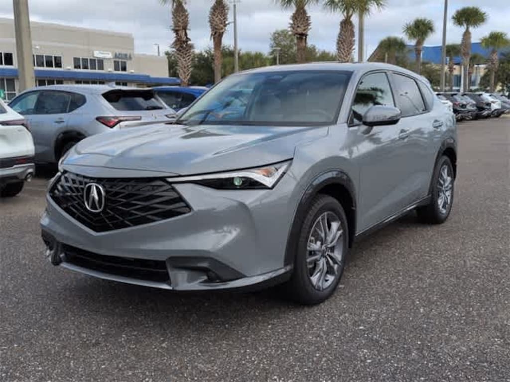 This 2025 Acura ADX in Urban Gray Pearl, features 4-Wheel Disc Brakes, 8 Speakers, ABS brakes, Air Conditioning, Alloy wheels, AM/FM radio, Apple CarPlay/Android Auto, Auto High-beam Headlights, Auto-dimming Rear-View mirror, Automatic temperature control, Brake assist, Bumpers: body-color, Delay-off headlights, Driver door bin, Driver vanity mirror, Dual front impact airbags, Dual front side impact airbags, Electronic Stability Control, Emergency communication system: AcuraLink, Exterior Parking Camera Rear, Four wheel independent suspension, Front anti-roll bar, Front Bucket Seats, Front Center Armrest, Front dual zone A/C, Front reading lights, Fully automatic headlights, Heated door mirrors, Heated Front Bucket Seats, Heated front seats, Illuminated entry, Knee airbag, Lane departure: Lane Keeping Assist System (LKAS) active, Leather Shift Knob, Leather steering wheel, Leatherette Trimmed Seats, Low tire pressure warning, Occupant sensing airbag, Outside temperature display, Overhead airbag, Overhead console, Panic alarm, Passenger door bin, Passenger vanity mirror, Power door mirrors, Power driver seat, Power Liftgate, Power moonroof, Power steering, Power windows, Radio data system, Radio: AM/FM Acura Premium Audio System, Rear anti-roll bar, Rear reading lights, Rear seat center armrest, Rear side impact airbag, Rear window defroster, Rear window wiper, Remote keyless entry, Security system, Speed control, Speed-sensing steering, Speed-Sensitive Wipers, Split folding rear seat, Spoiler, Steering wheel mounted audio controls, Tachometer, Telescoping steering wheel, Tilt steering wheel, Traction control, Trip computer, Turn signal indicator mirrors, Variably intermittent wipers, and Wheels: 18 x 7J Aluminum Alloy: FWD