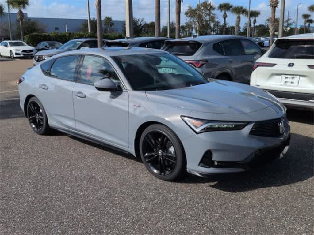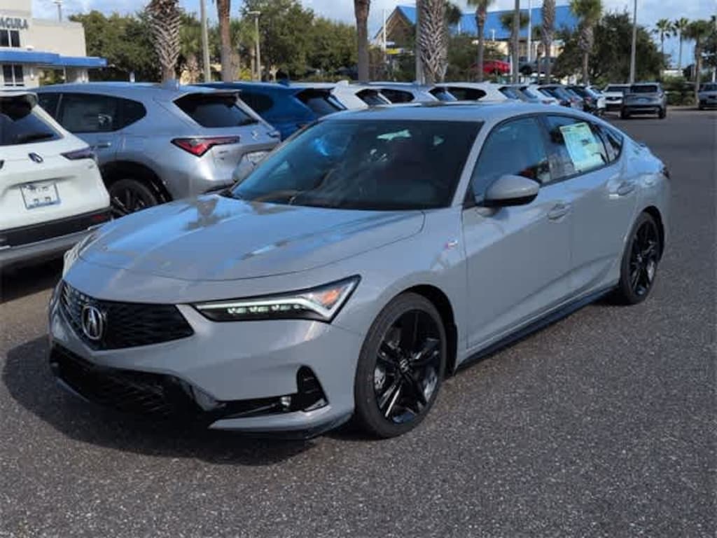 This 2026 Acura Integra A-Spec Package in Urban Gray Pearl, features 18 Aluminum Alloy Wheels, 4-Wheel Disc Brakes, 8 Speakers, ABS brakes, Air Conditioning, Alloy wheels, AM/FM radio, Apple CarPlay/Android Auto, Auto High-beam Headlights, Auto-dimming Rear-View mirror, Automatic temperature control, Brake assist, Bumpers: body-color, Compass, Delay-off headlights, Driver door bin, Driver vanity mirror, Dual front impact airbags, Dual front side impact airbags, Electronic Stability Control, Four wheel independent suspension, Front anti-roll bar, Front Bucket Seats, Front Center Armrest, Front dual zone A/C, Front fog lights, Front reading lights, Fully automatic headlights, Heated door mirrors, Heated Front Bucket Seats, Heated front seats, Illuminated entry, Knee airbag, Lane departure: Lane Keeping Assist System (LKAS) active, Leather Shift Knob, Leather steering wheel, Leatherette-Trimmed Seating Surfaces, Low tire pressure warning, Occupant sensing airbag, Outside temperature display, Overhead airbag, Overhead console, Panic alarm, Passenger door bin, Passenger vanity mirror, Power door mirrors, Power driver seat, Power moonroof, Power steering, Power windows, Radio data system, Radio: Acura Premium Audio System, Rear anti-roll bar, Rear seat center armrest, Rear side impact airbag, Rear window defroster, Remote keyless entry, Security system, Speed control, Speed-sensing steering, Speed-Sensitive Wipers, Split folding rear seat, Spoiler, Steering wheel mounted audio controls, Tachometer, Telescoping steering wheel, Tilt steering wheel, Traction control, Trip computer, and Variably intermittent wipers: FWD