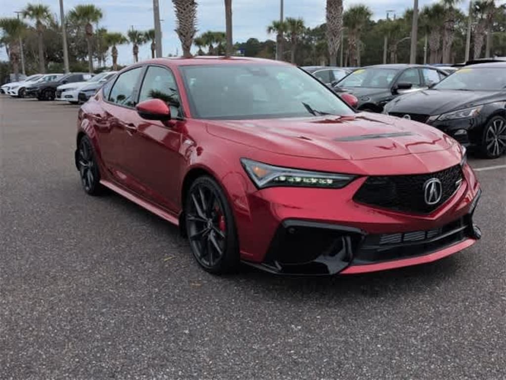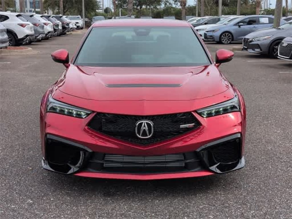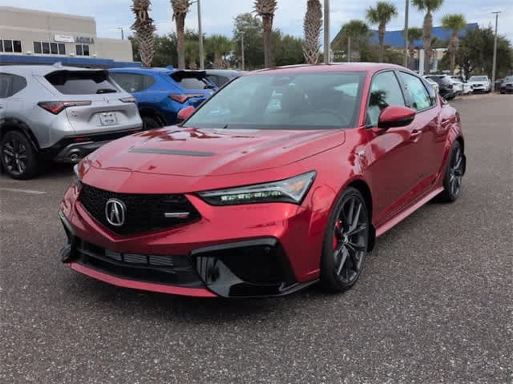 This 2026 Acura Integra Type S in Performance Red Pearl, features 16 Speakers, 19 Aluminum-Alloy Wheels, 4-Wheel Disc Brakes, ABS brakes, Adaptive suspension, Air Conditioning, Alloy wheels, AM/FM radio: SiriusXM, Apple CarPlay/Android Auto, Auto High-beam Headlights, Auto-dimming Rear-View mirror, Automatic temperature control, Brake assist, Bumpers: body-color, Compass, Delay-off headlights, Driver door bin, Driver vanity mirror, Dual front impact airbags, Dual front side impact airbags, Electronic Stability Control, Emergency communication system: AcuraLink (subscription required), Four wheel independent suspension, Front anti-roll bar, Front Bucket Seats, Front Center Armrest, Front dual zone A/C, Front reading lights, Fully automatic headlights, Heads-Up Display, Heated door mirrors, Heated Front Bucket Seats, Heated front seats, Illuminated entry, Knee airbag, Lane departure: Lane Keeping Assist System (LKAS) active, Leather Shift Knob, Leather steering wheel, Low tire pressure warning, Occupant sensing airbag, Outside temperature display, Overhead airbag, Overhead console, Panic alarm, Passenger door bin, Passenger vanity mirror, Perforated Ultrasuede-Trimmed Front Seats, Power door mirrors, Power driver seat, Power steering, Power windows, Radio data system, Radio: ELS Studio 3D Premium Audio System, Rain sensing wipers, Rear anti-roll bar, Rear side impact airbag, Rear window defroster, Remote keyless entry, Security system, Speed control, Speed-sensing steering, Speed-Sensitive Wipers, Split folding rear seat, Spoiler, Steering wheel mounted audio controls, Tachometer, Telescoping steering wheel, Tilt steering wheel, Traction control, Trip computer, Turn signal indicator mirrors, and Variably intermittent wipers: FWD