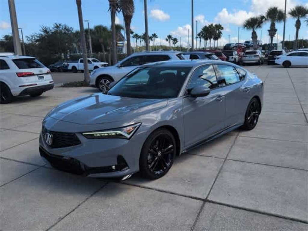This 2026 Acura Integra A-Spec Package in Urban Gray Pearl, features 18 Aluminum Alloy Wheels, 4-Wheel Disc Brakes, 8 Speakers, ABS brakes, Air Conditioning, Alloy wheels, AM/FM radio, Apple CarPlay/Android Auto, Auto High-beam Headlights, Auto-dimming Rear-View mirror, Automatic temperature control, Brake assist, Bumpers: body-color, Compass, Delay-off headlights, Driver door bin, Driver vanity mirror, Dual front impact airbags, Dual front side impact airbags, Electronic Stability Control, Four wheel independent suspension, Front anti-roll bar, Front Bucket Seats, Front Center Armrest, Front dual zone A/C, Front fog lights, Front reading lights, Fully automatic headlights, Heated door mirrors, Heated Front Bucket Seats, Heated front seats, Illuminated entry, Knee airbag, Lane departure: Lane Keeping Assist System (LKAS) active, Leather Shift Knob, Leather steering wheel, Leatherette-Trimmed Seating Surfaces, Low tire pressure warning, Occupant sensing airbag, Outside temperature display, Overhead airbag, Overhead console, Panic alarm, Passenger door bin, Passenger vanity mirror, Power door mirrors, Power driver seat, Power moonroof, Power steering, Power windows, Radio data system, Radio: Acura Premium Audio System, Rear anti-roll bar, Rear seat center armrest, Rear side impact airbag, Rear window defroster, Remote keyless entry, Security system, Speed control, Speed-sensing steering, Speed-Sensitive Wipers, Split folding rear seat, Spoiler, Steering wheel mounted audio controls, Tachometer, Telescoping steering wheel, Tilt steering wheel, Traction control, Trip computer, and Variably intermittent wipers: FWD