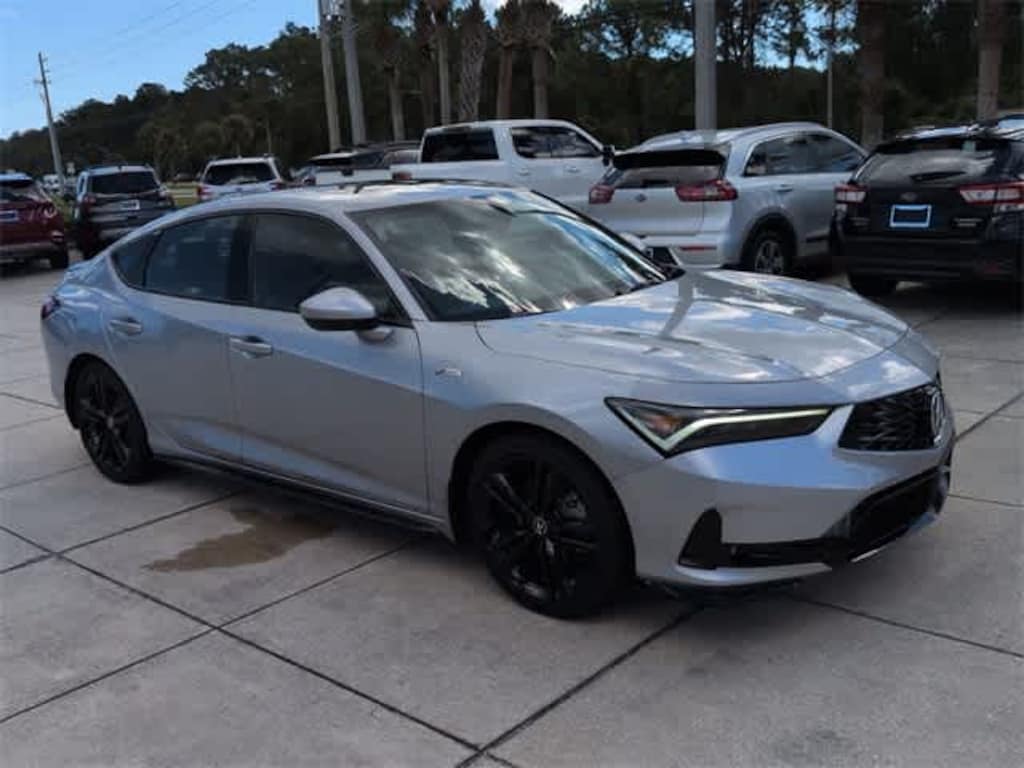 This 2026 Acura Integra A-Spec Package in Solar Silver Metallic, features 18 Aluminum Alloy Wheels, 4-Wheel Disc Brakes, 8 Speakers, ABS brakes, Air Conditioning, Alloy wheels, AM/FM radio, Apple CarPlay/Android Auto, Auto High-beam Headlights, Auto-dimming Rear-View mirror, Automatic temperature control, Brake assist, Bumpers: body-color, Compass, Delay-off headlights, Driver door bin, Driver vanity mirror, Dual front impact airbags, Dual front side impact airbags, Electronic Stability Control, Four wheel independent suspension, Front anti-roll bar, Front Bucket Seats, Front Center Armrest, Front dual zone A/C, Front fog lights, Front reading lights, Fully automatic headlights, Heated door mirrors, Heated Front Bucket Seats, Heated front seats, Illuminated entry, Knee airbag, Lane departure: Lane Keeping Assist System (LKAS) active, Leather Shift Knob, Leather steering wheel, Leatherette-Trimmed Seating Surfaces, Low tire pressure warning, Occupant sensing airbag, Outside temperature display, Overhead airbag, Overhead console, Panic alarm, Passenger door bin, Passenger vanity mirror, Power door mirrors, Power driver seat, Power moonroof, Power steering, Power windows, Radio data system, Radio: Acura Premium Audio System, Rear anti-roll bar, Rear seat center armrest, Rear side impact airbag, Rear window defroster, Remote keyless entry, Security system, Speed control, Speed-sensing steering, Speed-Sensitive Wipers, Split folding rear seat, Spoiler, Steering wheel mounted audio controls, Tachometer, Telescoping steering wheel, Tilt steering wheel, Traction control, Trip computer, and Variably intermittent wipers: FWD
