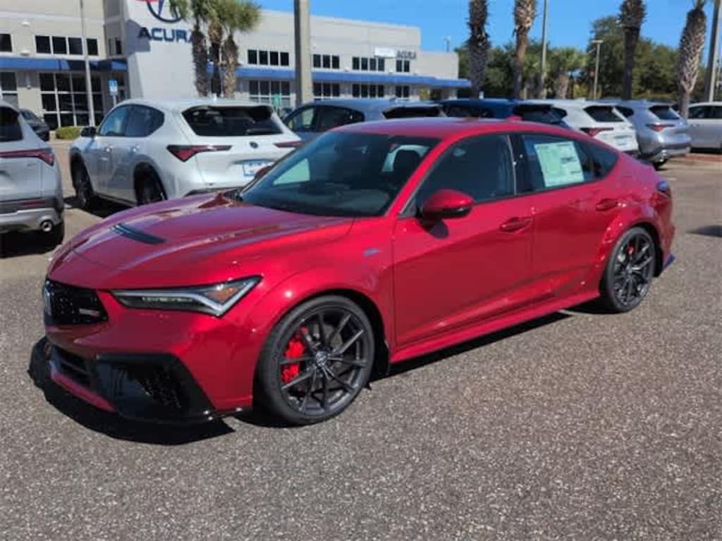 This 2026 Acura Integra Type S in Performance Red Pearl, features 16 Speakers, 19 Aluminum-Alloy Wheels, 4-Wheel Disc Brakes, ABS brakes, Adaptive suspension, Air Conditioning, Alloy wheels, AM/FM radio: SiriusXM, Apple CarPlay/Android Auto, Auto High-beam Headlights, Auto-dimming Rear-View mirror, Automatic temperature control, Brake assist, Bumpers: body-color, Compass, Delay-off headlights, Driver door bin, Driver vanity mirror, Dual front impact airbags, Dual front side impact airbags, Electronic Stability Control, Emergency communication system: AcuraLink (subscription required), Four wheel independent suspension, Front anti-roll bar, Front Bucket Seats, Front Center Armrest, Front dual zone A/C, Front reading lights, Fully automatic headlights, Heads-Up Display, Heated door mirrors, Heated Front Bucket Seats, Heated front seats, Illuminated entry, Knee airbag, Lane departure: Lane Keeping Assist System (LKAS) active, Leather Shift Knob, Leather steering wheel, Low tire pressure warning, Occupant sensing airbag, Outside temperature display, Overhead airbag, Overhead console, Panic alarm, Passenger door bin, Passenger vanity mirror, Perforated Ultrasuede-Trimmed Front Seats, Power door mirrors, Power driver seat, Power steering, Power windows, Radio data system, Radio: ELS Studio 3D Premium Audio System, Rain sensing wipers, Rear anti-roll bar, Rear side impact airbag, Rear window defroster, Remote keyless entry, Security system, Speed control, Speed-sensing steering, Speed-Sensitive Wipers, Split folding rear seat, Spoiler, Steering wheel mounted audio controls, Tachometer, Telescoping steering wheel, Tilt steering wheel, Traction control, Trip computer, Turn signal indicator mirrors, and Variably intermittent wipers: FWD
