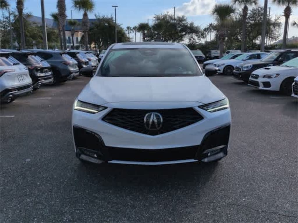This 2026 Acura MDX A-Spec in Platinum White Pearl, features 19 Speakers, 3rd row seats: split-bench, 4-Wheel Disc Brakes, ABS brakes, Air Conditioning, Alloy wheels, AM/FM radio, Anti-whiplash front head restraints, Apple CarPlay/Android Auto, Audio memory, Auto High-beam Headlights, Auto tilt-away steering wheel, Auto-dimming Rear-View mirror, Automatic temperature control, Brake assist, Bumpers: body-color, Compass, Delay-off headlights, Driver door bin, Driver vanity mirror, Dual front impact airbags, Dual front side impact airbags, Electronic Stability Control, Emergency communication system: AcuraLink, Exterior Parking Camera Rear, Four wheel independent suspension, Front anti-roll bar, Front Bucket Seats, Front Center Armrest, Front dual zone A/C, Front fog lights, Front reading lights, Fully automatic headlights, Garage door transmitter: HomeLink, Heated and Ventilated Front Sport Seats, Heated door mirrors, Heated front seats, HVAC memory, Illuminated entry, Knee airbag, Lane departure: Lane Keeping Assist System (LKAS) active, Leather steering wheel, Low tire pressure warning, Memory seat, Navigation system: Google built-in (3-Years Unlimited Data Plan for In-Vehicle Apps), Occupant sensing airbag, Outside temperature display, Overhead airbag, Overhead console, Panic alarm, Passenger door bin, Passenger vanity mirror, Perforated Premium Milano Leather and Ultrasuede Seats, Power door mirrors, Power driver seat, Power Liftgate, Power moonroof, Power passenger seat, Power steering, Power windows, Premium audio system: Acura/ELS Studio 3D, Radio data system, Radio: Bang & Olufsen Premium Audio System, Rain sensing wipers, Rear air conditioning, Rear anti-roll bar, Rear reading lights, Rear seat center armrest, Rear window defroster, Rear window wiper, Remote keyless entry, Security system, Speed control, Speed-sensing steering, Speed-Sensitive Wipers, Split folding rear seat, Spoiler, Sport steering wheel, Steering wheel memory, Steering wheel mounted audio controls, Tachometer, Telescoping steering wheel, Tilt steering wheel, Traction control, Trip computer, Turn signal indicator mirrors, Variably intermittent wipers, Ventilated front seats, and Wheels: 20 x 9J Aluminum Alloy: AWD