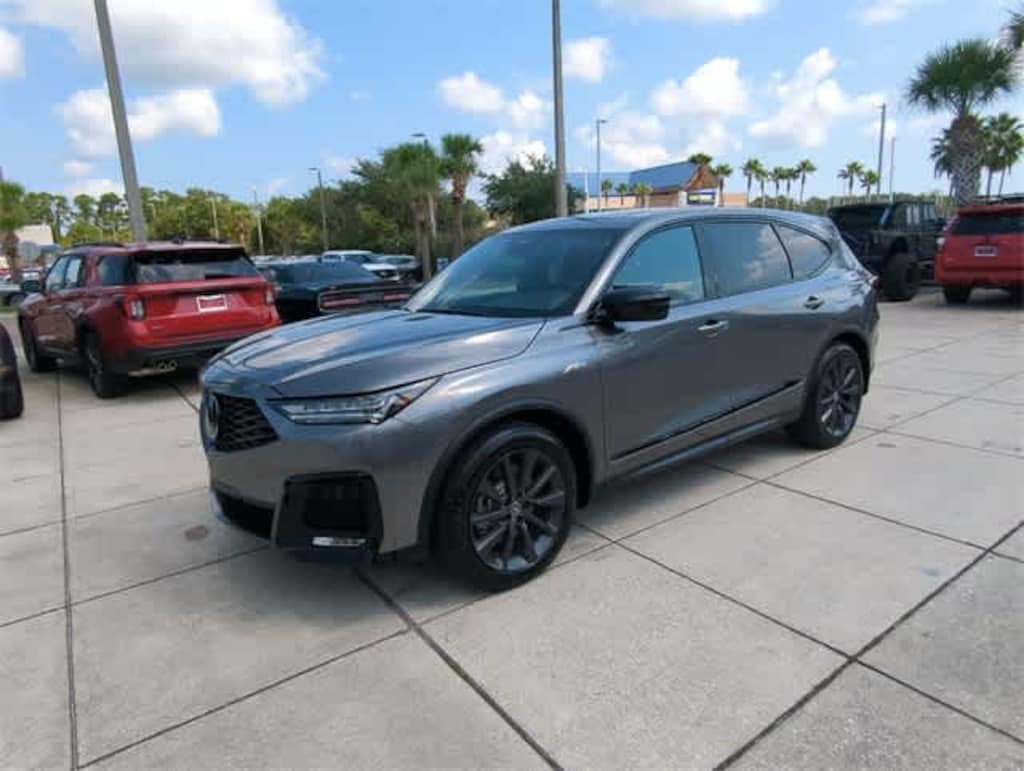 This 2026 Acura MDX A-Spec in Liquid Carbon Metallic, features 19 Speakers, 3rd row seats: split-bench, 4-Wheel Disc Brakes, ABS brakes, Air Conditioning, Alloy wheels, Anti-whiplash front head restraints, Apple CarPlay/Android Auto, Audio memory, Auto High-beam Headlights, Auto tilt-away steering wheel, Auto-dimming Rear-View mirror, Automatic temperature control, Brake assist, Bumpers: body-color, Compass, Delay-off headlights, Driver door bin, Driver vanity mirror, Dual front impact airbags, Dual front side impact airbags, Electronic Stability Control, Emergency communication system: AcuraLink, Exterior Parking Camera Rear, Four wheel independent suspension, Front anti-roll bar, Front Bucket Seats, Front Center Armrest, Front dual zone A/C, Front fog lights, Front reading lights, Fully automatic headlights, Garage door transmitter: HomeLink, Heated & Ventilated Front Sport Seats, Heated door mirrors, Heated front seats, HVAC memory, Illuminated entry, Knee airbag, Lane departure: Lane Keeping Assist System (LKAS) active, Leather steering wheel, Low tire pressure warning, Memory seat, Navigation system: Google built-in (3-Years Unlimited Data Plan for In-Vehicle Apps), Occupant sensing airbag, Outside temperature display, Overhead airbag, Overhead console, Panic alarm, Passenger door bin, Passenger vanity mirror, Perforated Premium Milano Lthr & Ultrasuede Seats, Power door mirrors, Power driver seat, Power Liftgate, Power moonroof, Power passenger seat, Power steering, Power windows, Premium audio system: Acura/ELS Studio 3D, Radio data system, Radio: Bang & Olufsen Premium Audio System, Rain sensing wipers, Rear air conditioning, Rear anti-roll bar, Rear reading lights, Rear seat center armrest, Rear window defroster, Rear window wiper, Remote keyless entry, Security system, Speed control, Speed-sensing steering, Speed-Sensitive Wipers, Split folding rear seat, Spoiler, Sport steering wheel, Steering wheel memory, Steering wheel mounted audio controls, Tachometer, Telescoping steering wheel, Tilt steering wheel, Traction control, Trip computer, Turn signal indicator mirrors, Variably intermittent wipers, Ventilated front seats, and Wheels: 20 x 9J Aluminum Alloy: AWD