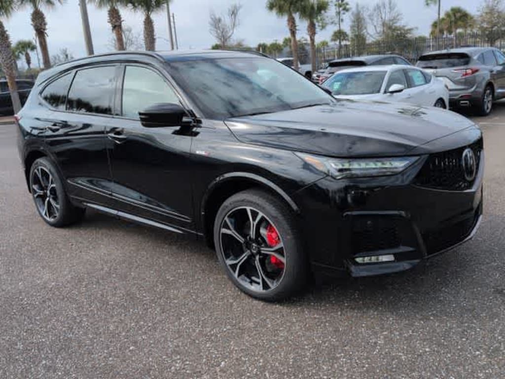 This 2026 Acura MDX Type S w/Advance Package in Majestic Black Pearl, features 3rd row seats: split-bench, 4-Wheel Disc Brakes, ABS brakes, Adaptive suspension, Air Conditioning, Alloy wheels, AM/FM radio, Anti-whiplash front head restraints, Apple CarPlay/Android Auto, Audio memory, Auto High-beam Headlights, Auto tilt-away steering wheel, Auto-dimming Rear-View mirror, Auto-leveling suspension, Automatic temperature control, Brake assist, Bumpers: body-color, Compass, Curvilinear Quilted Premium Milano Leather and Ultrasuede Seats, Delay-off headlights, Driver door bin, Driver vanity mirror, Dual front impact airbags, Dual front side impact airbags, Electronic Stability Control, Emergency communication system: AcuraLink, Exterior Parking Camera Rear, Four wheel independent suspension, Front anti-roll bar, Front Bucket Seats, Front Center Armrest, Front dual zone A/C, Front fog lights, Front reading lights, Fully automatic headlights, Garage door transmitter: HomeLink, Heads-Up Display, Heated and Ventilated Front Sport Seats, Heated door mirrors, Heated front seats, Heated rear seats, Heated steering wheel, HVAC memory, Illuminated entry, Knee airbag, Lane departure: Lane Keeping Assist System (LKAS) active, Leather steering wheel, Low tire pressure warning, Memory seat, Navigation system: Google built-in (3-Years Unlimited Data Plan for In-Vehicle Apps), Occupant sensing airbag, Outside temperature display, Overhead airbag, Overhead console, Panic alarm, Passenger door bin, Passenger vanity mirror, Power door mirrors, Power driver seat, Power Liftgate, Power moonroof, Power passenger seat, Power steering, Power windows, Premium audio system: ELS Studio 3D Signature Edition, Radio data system, Radio: Bang and Olufsen Ultra Sound System, Rain sensing wipers, Rear air conditioning, Rear anti-roll bar, Rear reading lights, Rear seat center armrest, Rear window defroster, Rear window wiper, Remote keyless entry, Security system, Speed control, Speed-sensing steering, Speed-Sensitive Wipers, Split folding rear seat, Spoiler, Sport steering wheel, Steering wheel memory, Steering wheel mounted audio controls, Tachometer, Telescoping steering wheel, Tilt steering wheel, Traction control, Trip computer, Turn signal indicator mirrors, Variably intermittent wipers, Ventilated front seats, and Wheels: 21 x 9.5J Aluminum Alloy: AWD