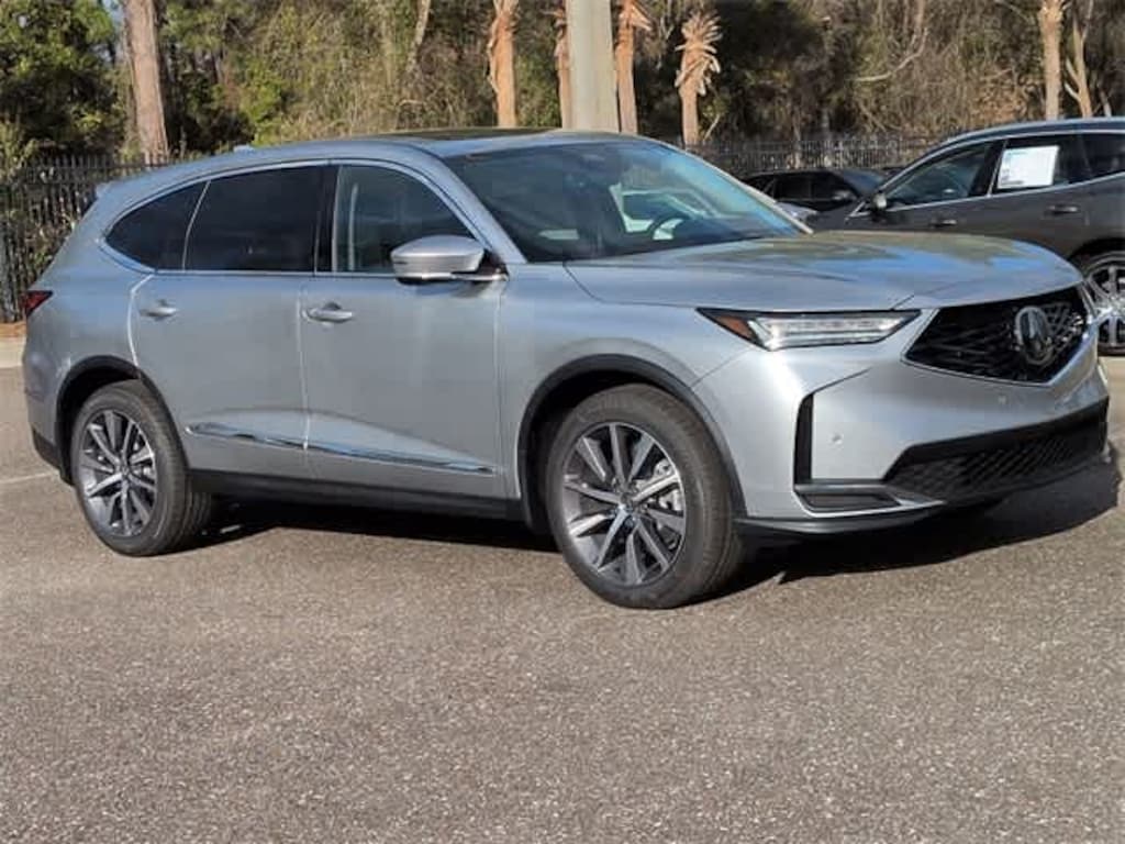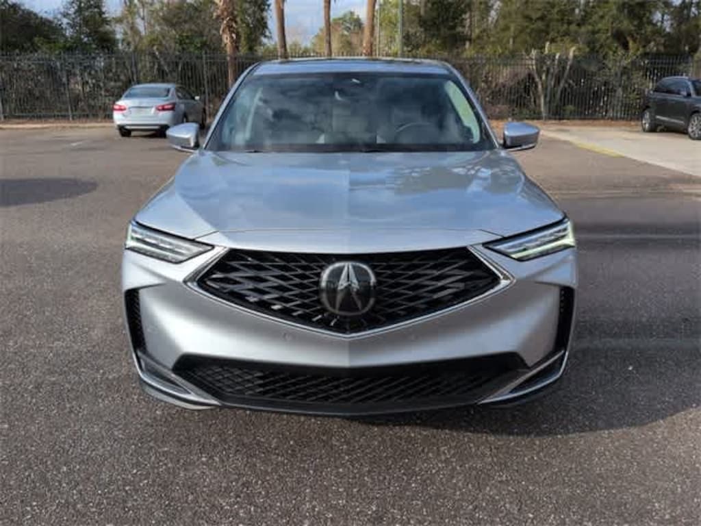 This 2026 Acura MDX Technology Package in Solar Silver Metallic, features 19 Speakers, 3rd row seats: split-bench, 4-Wheel Disc Brakes, ABS brakes, Air Conditioning, Alloy wheels, AM/FM radio, Anti-whiplash front head restraints, Apple CarPlay/Android Auto, Audio memory, Auto High-beam Headlights, Auto tilt-away steering wheel, Auto-dimming Rear-View mirror, Automatic temperature control, Brake assist, Bumpers: body-color, Compass, Delay-off headlights, Driver door bin, Driver vanity mirror, Dual front impact airbags, Dual front side impact airbags, Electronic Stability Control, Emergency communication system: AcuraLink, Exterior Parking Camera Rear, Four wheel independent suspension, Front anti-roll bar, Front Bucket Seats, Front Center Armrest, Front dual zone A/C, Front reading lights, Fully automatic headlights, Garage door transmitter: HomeLink, Heated door mirrors, Heated front seats, Heated Front Sport Seats, HVAC memory, Illuminated entry, Knee airbag, Lane departure: Lane Keeping Assist System (LKAS) active, Leather steering wheel, Low tire pressure warning, Memory seat, Navigation system: Google built-in (3-Years Unlimited Data Plan for In-Vehicle Apps), Occupant sensing airbag, Outside temperature display, Overhead airbag, Overhead console, Panic alarm, Passenger door bin, Passenger vanity mirror, Perforated Premium Milano Leather Trimmed Seats, Power door mirrors, Power driver seat, Power Liftgate, Power moonroof, Power passenger seat, Power steering, Power windows, Premium audio system: Acura/ELS Surround, Radio data system, Radio: Bang & Olufsen Premium Audio System, Rain sensing wipers, Rear air conditioning, Rear anti-roll bar, Rear reading lights, Rear seat center armrest, Rear window defroster, Rear window wiper, Remote keyless entry, Security system, Speed control, Speed-sensing steering, Speed-Sensitive Wipers, Split folding rear seat, Spoiler, Steering wheel memory, Steering wheel mounted audio controls, Tachometer, Telescoping steering wheel, Tilt steering wheel, Traction control, Trip computer, Turn signal indicator mirrors, Variably intermittent wipers, and Wheels: 20 x 9J Aluminum Alloy: AWD