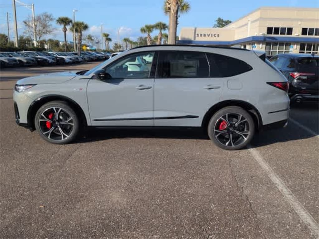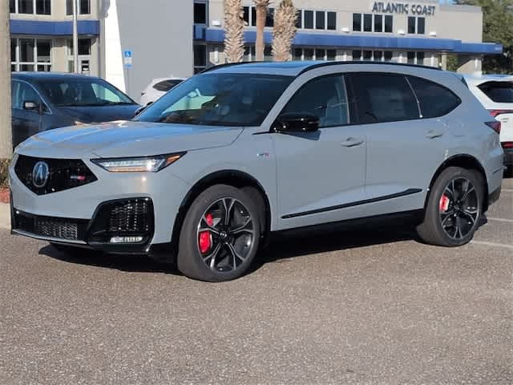 This 2026 Acura MDX Type S w/Advance Package in Modern Steel Metallic, features 3rd row seats: split-bench, 4-Wheel Disc Brakes, ABS brakes, Adaptive suspension, Air Conditioning, Alloy wheels, AM/FM radio, Anti-whiplash front head restraints, Apple CarPlay/Android Auto, Audio memory, Auto High-beam Headlights, Auto tilt-away steering wheel, Auto-dimming Rear-View mirror, Auto-leveling suspension, Automatic temperature control, Brake assist, Bumpers: body-color, Compass, Curvilinear Quilted Premium Milano Leather and Ultrasuede Seats, Delay-off headlights, Driver door bin, Driver vanity mirror, Dual front impact airbags, Dual front side impact airbags, Electronic Stability Control, Emergency communication system: AcuraLink, Exterior Parking Camera Rear, Four wheel independent suspension, Front anti-roll bar, Front Bucket Seats, Front Center Armrest, Front dual zone A/C, Front fog lights, Front reading lights, Fully automatic headlights, Garage door transmitter: HomeLink, Heads-Up Display, Heated and Ventilated Front Sport Seats, Heated door mirrors, Heated front seats, Heated rear seats, Heated steering wheel, HVAC memory, Illuminated entry, Knee airbag, Lane departure: Lane Keeping Assist System (LKAS) active, Leather steering wheel, Low tire pressure warning, Memory seat, Navigation system: Google built-in (3-Years Unlimited Data Plan for In-Vehicle Apps), Occupant sensing airbag, Outside temperature display, Overhead airbag, Overhead console, Panic alarm, Passenger door bin, Passenger vanity mirror, Power door mirrors, Power driver seat, Power Liftgate, Power moonroof, Power passenger seat, Power steering, Power windows, Premium audio system: ELS Studio 3D Signature Edition, Radio data system, Radio: Bang and Olufsen Ultra Sound System, Rain sensing wipers, Rear air conditioning, Rear anti-roll bar, Rear reading lights, Rear seat center armrest, Rear window defroster, Rear window wiper, Remote keyless entry, Security system, Speed control, Speed-sensing steering, Speed-Sensitive Wipers, Split folding rear seat, Spoiler, Sport steering wheel, Steering wheel memory, Steering wheel mounted audio controls, Tachometer, Telescoping steering wheel, Tilt steering wheel, Traction control, Trip computer, Turn signal indicator mirrors, Variably intermittent wipers, Ventilated front seats, and Wheels: 21 x 9.5J Aluminum Alloy: AWD