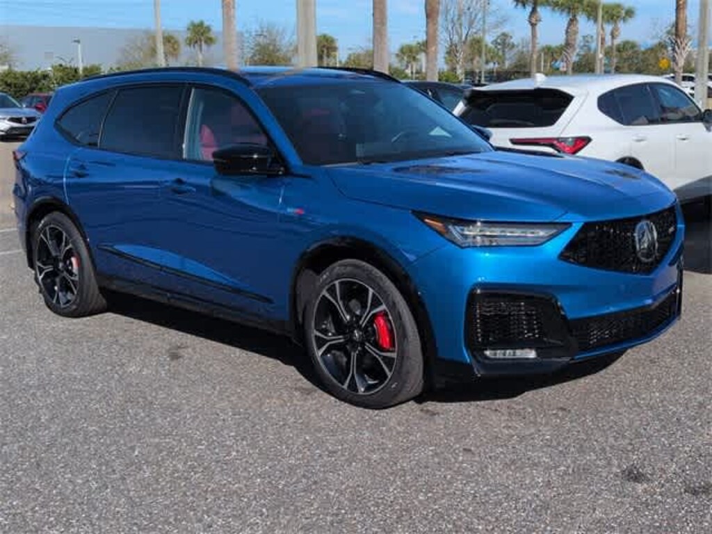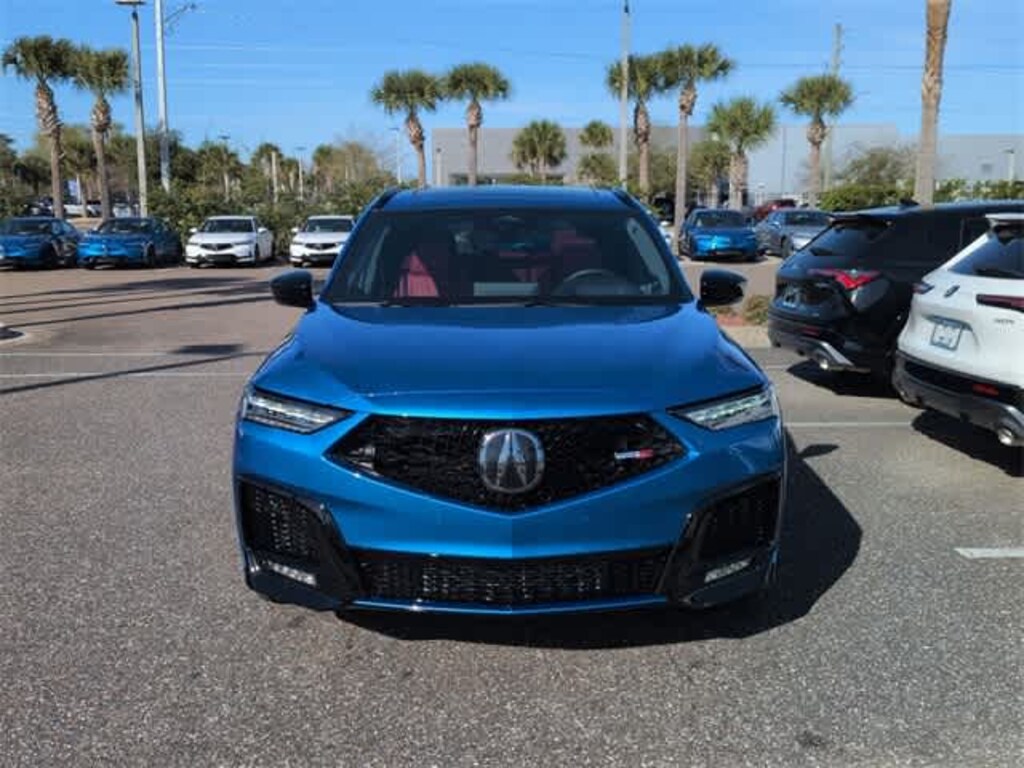 This 2026 Acura MDX Type S w/Advance Package in Blue, features 3rd row seats: split-bench, 4-Wheel Disc Brakes, ABS brakes, Adaptive suspension, Air Conditioning, Alloy wheels, AM/FM radio, Anti-whiplash front head restraints, Apple CarPlay/Android Auto, Audio memory, Auto High-beam Headlights, Auto tilt-away steering wheel, Auto-dimming Rear-View mirror, Auto-leveling suspension, Automatic temperature control, Brake assist, Bumpers: body-color, Compass, Curvilinear Quilted Premium Milano Leather and Ultrasuede Seats, Delay-off headlights, Driver door bin, Driver vanity mirror, Dual front impact airbags, Dual front side impact airbags, Electronic Stability Control, Emergency communication system: AcuraLink, Exterior Parking Camera Rear, Four wheel independent suspension, Front anti-roll bar, Front Bucket Seats, Front Center Armrest, Front dual zone A/C, Front fog lights, Front reading lights, Fully automatic headlights, Garage door transmitter: HomeLink, Heads-Up Display, Heated and Ventilated Front Sport Seats, Heated door mirrors, Heated front seats, Heated rear seats, Heated steering wheel, HVAC memory, Illuminated entry, Knee airbag, Lane departure: Lane Keeping Assist System (LKAS) active, Leather steering wheel, Low tire pressure warning, Memory seat, Navigation system: Google built-in (3-Years Unlimited Data Plan for In-Vehicle Apps), Occupant sensing airbag, Outside temperature display, Overhead airbag, Overhead console, Panic alarm, Passenger door bin, Passenger vanity mirror, Power door mirrors, Power driver seat, Power Liftgate, Power moonroof, Power passenger seat, Power steering, Power windows, Premium audio system: ELS Studio 3D Signature Edition, Radio data system, Radio: Bang and Olufsen Ultra Sound System, Rain sensing wipers, Rear air conditioning, Rear anti-roll bar, Rear reading lights, Rear seat center armrest, Rear window defroster, Rear window wiper, Remote keyless entry, Security system, Speed control, Speed-sensing steering, Speed-Sensitive Wipers, Split folding rear seat, Spoiler, Sport steering wheel, Steering wheel memory, Steering wheel mounted audio controls, Tachometer, Telescoping steering wheel, Tilt steering wheel, Traction control, Trip computer, Turn signal indicator mirrors, Variably intermittent wipers, Ventilated front seats, and Wheels: 21 x 9.5J Aluminum Alloy: AWD