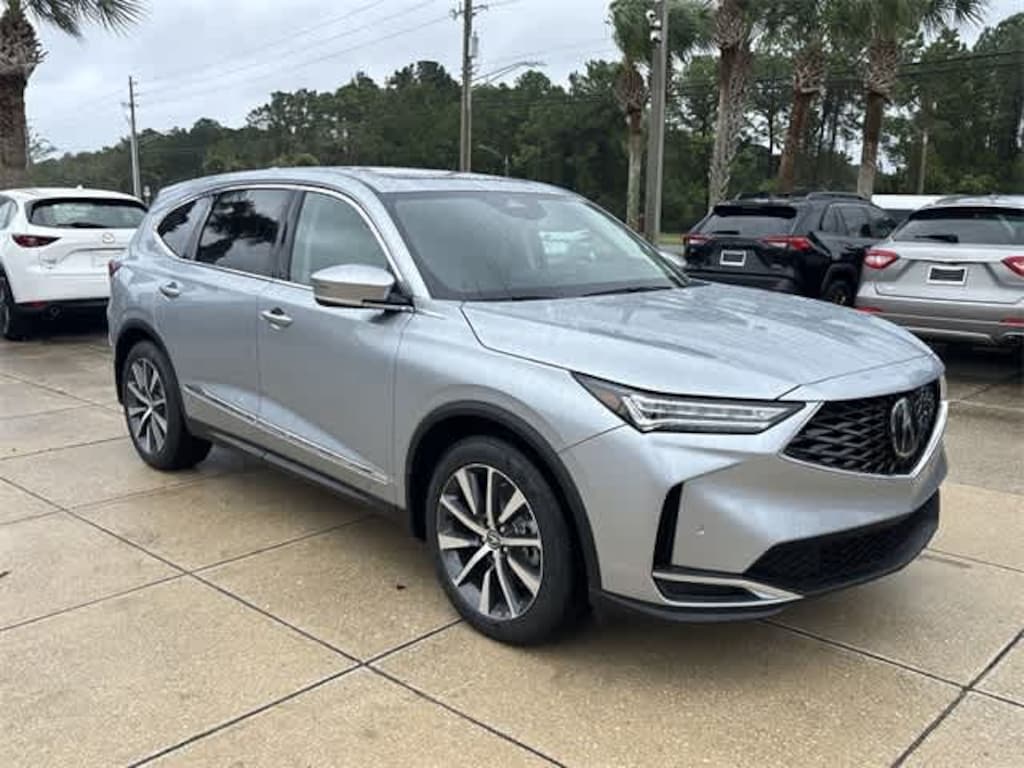 This 2026 Acura MDX Technology Package in Solar Silver Metallic, features 19 Speakers, 3rd row seats: split-bench, 4-Wheel Disc Brakes, ABS brakes, Air Conditioning, Alloy wheels, Anti-whiplash front head restraints, Apple CarPlay/Android Auto, Audio memory, Auto High-beam Headlights, Auto tilt-away steering wheel, Auto-dimming Rear-View mirror, Automatic temperature control, Brake assist, Bumpers: body-color, Compass, Delay-off headlights, Driver door bin, Driver vanity mirror, Dual front impact airbags, Dual front side impact airbags, Electronic Stability Control, Emergency communication system: AcuraLink, Exterior Parking Camera Rear, Four wheel independent suspension, Front anti-roll bar, Front Bucket Seats, Front Center Armrest, Front dual zone A/C, Front reading lights, Fully automatic headlights, Garage door transmitter: HomeLink, Heated door mirrors, Heated front seats, Heated Front Sport Seats, HVAC memory, Illuminated entry, Knee airbag, Lane departure: Lane Keeping Assist System (LKAS) active, Leather steering wheel, Low tire pressure warning, Memory seat, Navigation system: Google built-in (3-Years Unlimited Data Plan for In-Vehicle Apps), Occupant sensing airbag, Outside temperature display, Overhead airbag, Overhead console, Panic alarm, Passenger door bin, Passenger vanity mirror, Perforated Premium Milano Leather Trimmed Seats, Power door mirrors, Power driver seat, Power Liftgate, Power moonroof, Power passenger seat, Power steering, Power windows, Premium audio system: Acura/ELS Surround, Radio data system, Radio: Bang & Olufsen Premium Audio System, Rain sensing wipers, Rear air conditioning, Rear anti-roll bar, Rear reading lights, Rear seat center armrest, Rear window defroster, Rear window wiper, Remote keyless entry, Security system, Speed control, Speed-sensing steering, Speed-Sensitive Wipers, Split folding rear seat, Spoiler, Steering wheel memory, Steering wheel mounted audio controls, Tachometer, Telescoping steering wheel, Tilt steering wheel, Traction control, Trip computer, Turn signal indicator mirrors, Variably intermittent wipers, and Wheels: 20 x 9J Aluminum Alloy: AWD