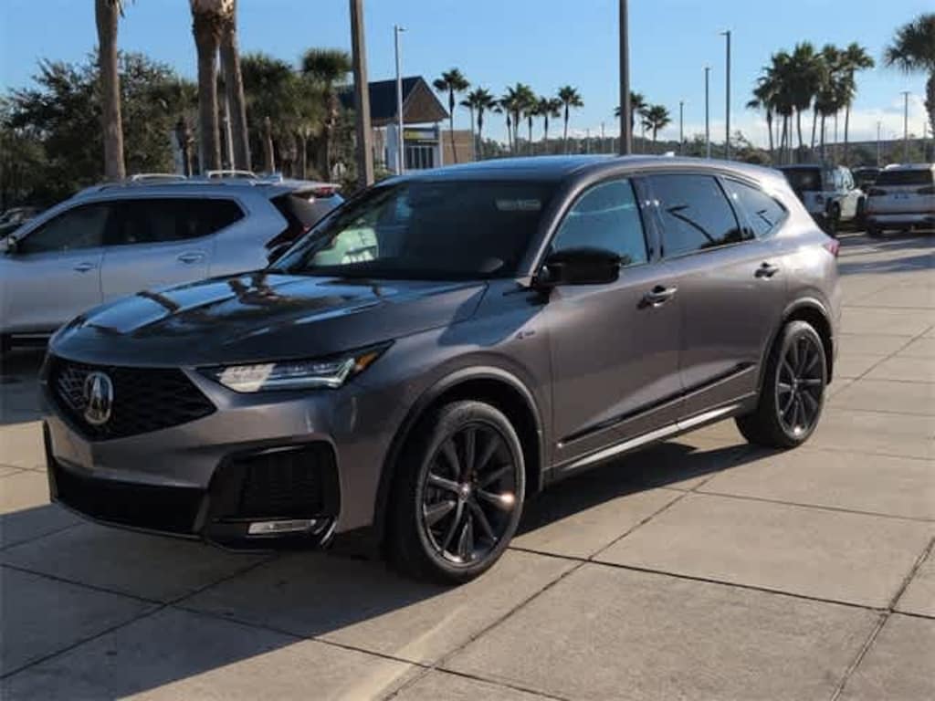 This 2026 Acura MDX A-Spec in Liquid Carbon Metallic, features 19 Speakers, 3rd row seats: split-bench, 4-Wheel Disc Brakes, ABS brakes, Air Conditioning, Alloy wheels, Anti-whiplash front head restraints, Apple CarPlay/Android Auto, Audio memory, Auto High-beam Headlights, Auto tilt-away steering wheel, Auto-dimming Rear-View mirror, Automatic temperature control, Brake assist, Bumpers: body-color, Compass, Delay-off headlights, Driver door bin, Driver vanity mirror, Dual front impact airbags, Dual front side impact airbags, Electronic Stability Control, Emergency communication system: AcuraLink, Exterior Parking Camera Rear, Four wheel independent suspension, Front anti-roll bar, Front Bucket Seats, Front Center Armrest, Front dual zone A/C, Front fog lights, Front reading lights, Fully automatic headlights, Garage door transmitter: HomeLink, Heated & Ventilated Front Sport Seats, Heated door mirrors, Heated front seats, HVAC memory, Illuminated entry, Knee airbag, Lane departure: Lane Keeping Assist System (LKAS) active, Leather steering wheel, Low tire pressure warning, Memory seat, Navigation system: Google built-in (3-Years Unlimited Data Plan for In-Vehicle Apps), Occupant sensing airbag, Outside temperature display, Overhead airbag, Overhead console, Panic alarm, Passenger door bin, Passenger vanity mirror, Perforated Premium Milano Lthr & Ultrasuede Seats, Power door mirrors, Power driver seat, Power Liftgate, Power moonroof, Power passenger seat, Power steering, Power windows, Premium audio system: Acura/ELS Studio 3D, Radio data system, Radio: Bang & Olufsen Premium Audio System, Rain sensing wipers, Rear air conditioning, Rear anti-roll bar, Rear reading lights, Rear seat center armrest, Rear window defroster, Rear window wiper, Remote keyless entry, Security system, Speed control, Speed-sensing steering, Speed-Sensitive Wipers, Split folding rear seat, Spoiler, Sport steering wheel, Steering wheel memory, Steering wheel mounted audio controls, Tachometer, Telescoping steering wheel, Tilt steering wheel, Traction control, Trip computer, Turn signal indicator mirrors, Variably intermittent wipers, Ventilated front seats, and Wheels: 20 x 9J Aluminum Alloy: AWD