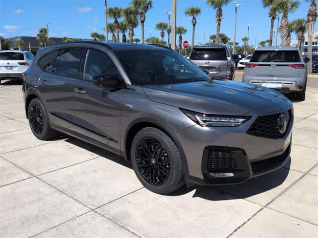 This 2026 Acura MDX A-Spec Advance Package in Liquid Carbon Metallic, features 19 Speakers, 3rd row seats: split-bench, 4-Wheel Disc Brakes, ABS brakes, Air Conditioning, Alloy wheels, Anti-whiplash front head restraints, Apple CarPlay/Android Auto, Audio memory, Auto High-beam Headlights, Auto tilt-away steering wheel, Auto-dimming Rear-View mirror, Automatic temperature control, Brake assist, Bumpers: body-color, Compass, Curvilinear Qltd Perforated Prem Milano Lthr Seats, Delay-off headlights, Driver door bin, Driver vanity mirror, Dual front impact airbags, Dual front side impact airbags, Electronic Stability Control, Emergency communication system: AcuraLink, Exterior Parking Camera Rear, Four wheel independent suspension, Front anti-roll bar, Front Bucket Seats, Front Center Armrest, Front dual zone A/C, Front fog lights, Front reading lights, Fully automatic headlights, Garage door transmitter: HomeLink, Heads-Up Display, Heated & Ventilated Front Sport Seats, Heated door mirrors, Heated front seats, Heated rear seats, Heated steering wheel, HVAC memory, Illuminated entry, Knee airbag, Lane departure: Lane Keeping Assist System (LKAS) active, Leather steering wheel, Low tire pressure warning, Memory seat, Navigation system: Google built-in (3-Years Unlimited Data Plan for In-Vehicle Apps), Occupant sensing airbag, Outside temperature display, Overhead airbag, Overhead console, Panic alarm, Passenger door bin, Passenger vanity mirror, Power door mirrors, Power driver seat, Power Liftgate, Power moonroof, Power passenger seat, Power steering, Power windows, Premium audio system: Acura/ELS Studio 3D, Radio data system, Radio: Bang & Olufsen Premium Audio System, Rain sensing wipers, Rear air conditioning, Rear anti-roll bar, Rear reading lights, Rear seat center armrest, Rear window defroster, Rear window wiper, Remote keyless entry, Security system, Speed control, Speed-sensing steering, Speed-Sensitive Wipers, Split folding rear seat, Spoiler, Sport steering wheel, Steering wheel memory, Steering wheel mounted audio controls, Tachometer, Telescoping steering wheel, Tilt steering wheel, Traction control, Trip computer, Turn signal indicator mirrors, Variably intermittent wipers, Ventilated front seats, and Wheels: 20 x 9J Aluminum Alloy: AWD