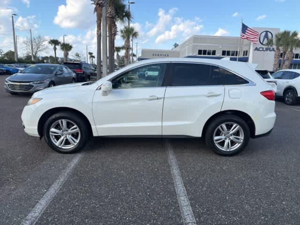 This 2014 Acura RDX Technology Package in White Diamond Pearl, features 10 Speakers, 18 x 7.5 Aluminum Alloy Wheels, 4-Wheel Disc Brakes, 4.25 Axle Ratio, ABS brakes, Air Conditioning, Alloy wheels, AM/FM radio: XM, Anti-whiplash front head restraints, Auto-dimming Rear-View mirror, Automatic temperature control, Brake assist, Bumpers: body-color, CD player, Delay-off headlights, Driver door bin, Driver vanity mirror, Dual front impact airbags, Dual front side impact airbags, DVD-Audio, Electronic Stability Control, Exterior Parking Camera Rear, Four wheel independent suspension, Front anti-roll bar, Front Bucket Seats, Front Center Armrest, Front dual zone A/C, Front fog lights, Front reading lights, Fully automatic headlights, Garage door transmitter: HomeLink, Heated door mirrors, Heated front seats, Heated Sport Bucket Seats, High intensity discharge headlights: Xenon, Illuminated entry, Leather Shift Knob, Leather steering wheel, Low tire pressure warning, Memory seat, Navigation System, Occupant sensing airbag, Outside temperature display, Overhead airbag, Overhead console, Panic alarm, Passenger door bin, Passenger vanity mirror, Perforated Leather-Trimmed Interior, Power door mirrors, Power driver seat, Power Liftgate, Power moonroof, Power passenger seat, Power steering, Power windows, Radio data system, Radio: Acura/ELS Surround Premium Audio System, Rear anti-roll bar, Rear seat center armrest, Rear window defroster, Rear window wiper, Remote keyless entry, Security system, Speed control, Speed-sensing steering, Speed-Sensitive Wipers, Split folding rear seat, Spoiler, Steering wheel mounted audio controls, Tachometer, Telescoping steering wheel, Tilt steering wheel, Traction control, Trip computer, Turn signal indicator mirrors, and Variably intermittent wipers: