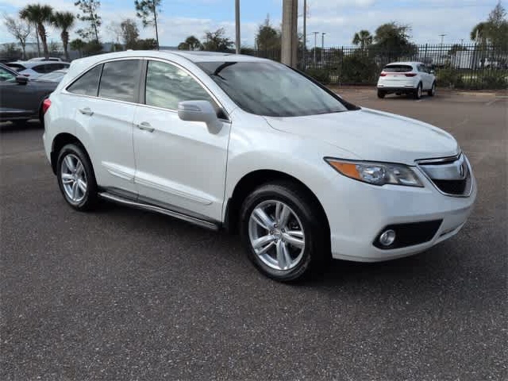 This 2015 Acura RDX Technology Package in White Diamond Pearl, features 10 Speakers, 18 x 7.5 Aluminum Alloy Wheels, 4-Wheel Disc Brakes, 4.25 Axle Ratio, ABS brakes, Air Conditioning, Alloy wheels, AM/FM radio: SiriusXM, Anti-whiplash front head restraints, Auto-dimming Rear-View mirror, Automatic temperature control, Brake assist, Bumpers: body-color, CD player, Delay-off headlights, Driver door bin, Driver vanity mirror, Dual front impact airbags, Dual front side impact airbags, Electronic Stability Control, Exterior Parking Camera Rear, Four wheel independent suspension, Front anti-roll bar, Front Bucket Seats, Front Center Armrest, Front dual zone A/C, Front fog lights, Front reading lights, Fully automatic headlights, Garage door transmitter: HomeLink, Heated door mirrors, Heated front seats, Heated Sport Bucket Seats, High intensity discharge headlights: Xenon, Illuminated entry, Leather Shift Knob, Leather steering wheel, Low tire pressure warning, Memory seat, Navigation System, Occupant sensing airbag, Outside temperature display, Overhead airbag, Overhead console, Panic alarm, Passenger door bin, Passenger vanity mirror, Perforated Leather-Trimmed Interior, Power door mirrors, Power driver seat, Power Liftgate, Power moonroof, Power passenger seat, Power steering, Power windows, Radio data system, Radio: Acura/ELS Surround Premium Audio System, Rear anti-roll bar, Rear seat center armrest, Rear window defroster, Rear window wiper, Remote keyless entry, Security system, Speed control, Speed-sensing steering, Speed-Sensitive Wipers, Split folding rear seat, Spoiler, Steering wheel mounted audio controls, Tachometer, Telescoping steering wheel, Tilt steering wheel, Traction control, Trip computer, Turn signal indicator mirrors, and Variably intermittent wipers: