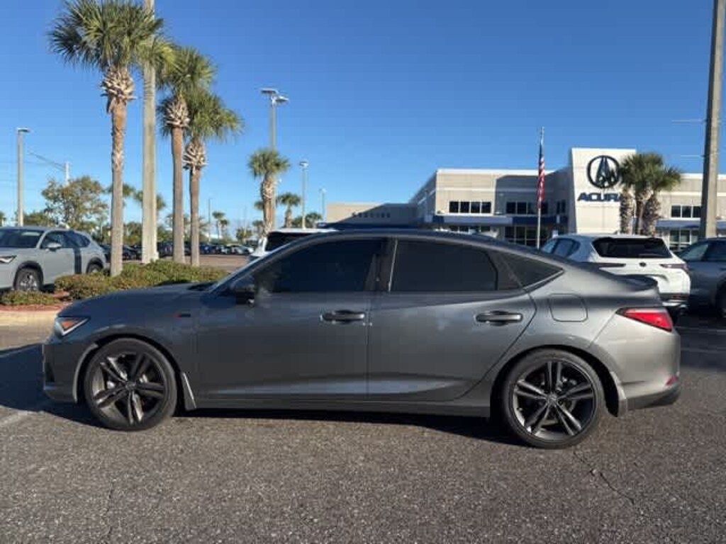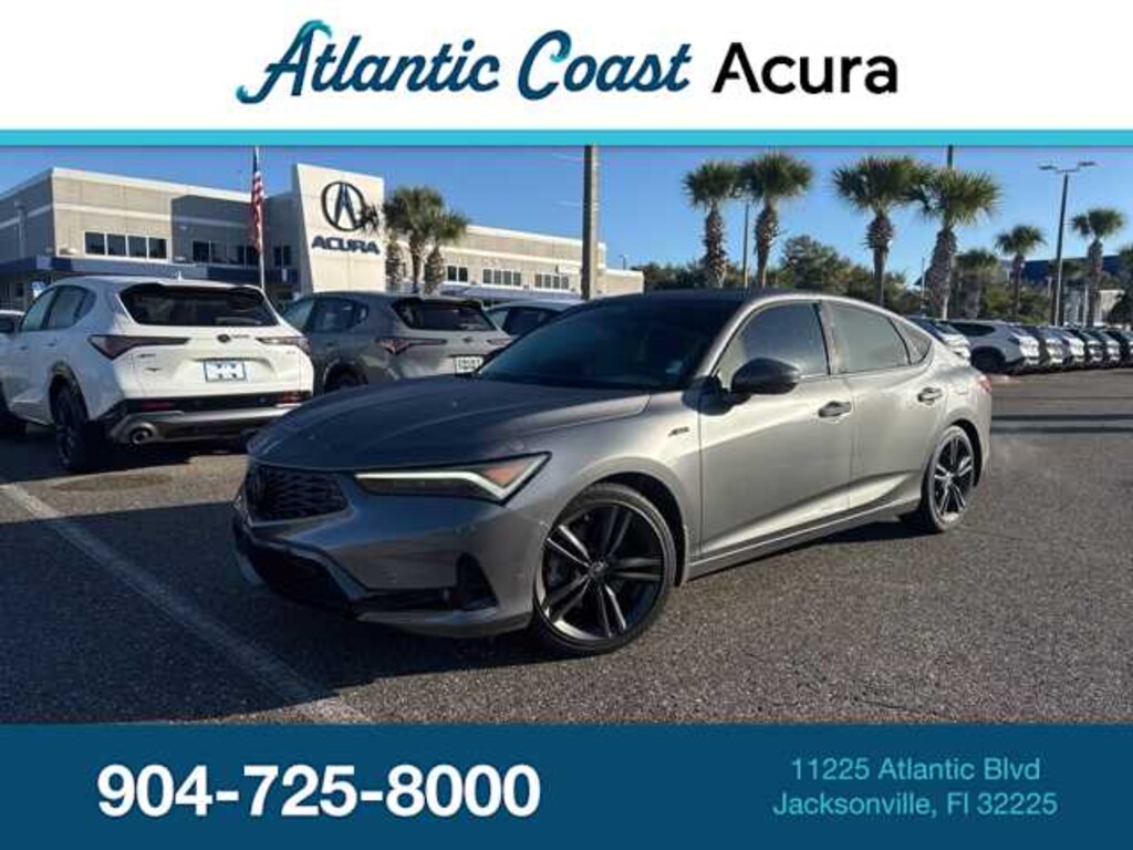 This 2023 Acura Integra A-Spec Tech Package in Gray, features 16 Speakers, 18 Alloy Wheels, 4-Wheel Disc Brakes, ABS brakes, Adaptive suspension, Air Conditioning, Alloy wheels, AM/FM radio: SiriusXM, Apple CarPlay/Android Auto, Auto High-beam Headlights, Auto-dimming Rear-View mirror, Automatic temperature control, Brake assist, Bumpers: body-color, Compass, Delay-off headlights, Driver door bin, Driver vanity mirror, Dual front impact airbags, Dual front side impact airbags, Electronic Stability Control, Emergency communication system: AcuraLink (subscription required), Four wheel independent suspension, Front anti-roll bar, Front Bucket Seats, Front Center Armrest, Front dual zone A/C, Front fog lights, Front reading lights, Fully automatic headlights, Heads-Up Display, Heated door mirrors, Heated Front Bucket Seats, Heated front seats, Illuminated entry, Knee airbag, Lane departure: Lane Keeping Assist System (LKAS) active, Leather Shift Knob, Low tire pressure warning, Memory seat, Occupant sensing airbag, Outside temperature display, Overhead airbag, Overhead console, Panic alarm, Passenger door bin, Passenger vanity mirror, Power door mirrors, Power driver seat, Power moonroof, Power passenger seat, Power steering, Power windows, Radio data system, Radio: ELS Studio 3D Premium Audio System, Rain sensing wipers, Rear anti-roll bar, Rear seat center armrest, Rear side impact airbag, Rear window defroster, Remote keyless entry, Security system, Speed control, Speed-sensing steering, Speed-Sensitive Wipers, Split folding rear seat, Spoiler, Steering wheel mounted audio controls, Suede-Trimmed Seating Surfaces w/Exclusive Stitch, Tachometer, Telescoping steering wheel, Tilt steering wheel, Traction control, Trip computer, Turn signal indicator mirrors, and Variably intermittent wipers: