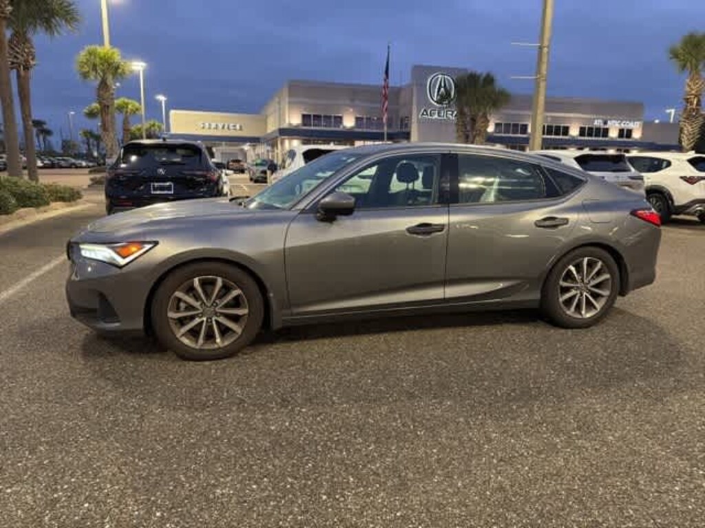 This 2023 Acura Integra in Gray, features 17 Alloy Wheels, 4-Wheel Disc Brakes, 8 Speakers, ABS brakes, Air Conditioning, Alloy wheels, AM/FM radio, Apple CarPlay/Android Auto, Auto High-beam Headlights, Auto-dimming Rear-View mirror, Automatic temperature control, Brake assist, Bumpers: body-color, Compass, Delay-off headlights, Driver door bin, Driver vanity mirror, Dual front impact airbags, Dual front side impact airbags, Electronic Stability Control, Four wheel independent suspension, Front anti-roll bar, Front Bucket Seats, Front Center Armrest, Front dual zone A/C, Front reading lights, Fully automatic headlights, Heated door mirrors, Heated Front Bucket Seats, Heated front seats, Illuminated entry, Knee airbag, Lane departure: Lane Keeping Assist System (LKAS) active, Leather Shift Knob, Leatherette-Trimmed Seating Surfaces, Low tire pressure warning, Occupant sensing airbag, Outside temperature display, Overhead airbag, Overhead console, Panic alarm, Passenger door bin, Passenger vanity mirror, Power door mirrors, Power driver seat, Power moonroof, Power steering, Power windows, Radio data system, Radio: Acura Premium Audio System, Rear anti-roll bar, Rear seat center armrest, Rear side impact airbag, Rear window defroster, Remote keyless entry, Security system, Speed control, Speed-sensing steering, Speed-Sensitive Wipers, Split folding rear seat, Steering wheel mounted audio controls, Tachometer, Telescoping steering wheel, Tilt steering wheel, Traction control, Trip computer, and Variably intermittent wipers: