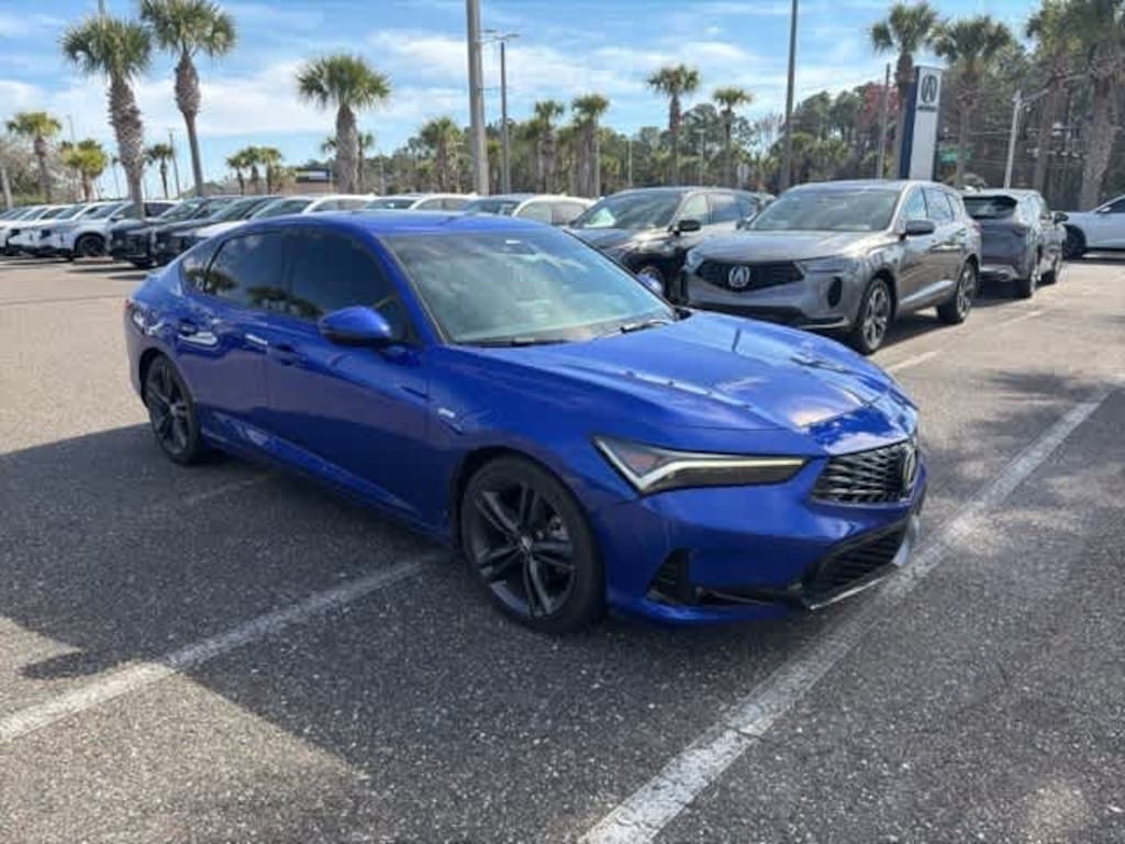 This 2024 Acura Integra A-Spec Tech Package in Blue, features 16 Speakers, 18 Aluminum Alloy Wheels, 4-Wheel Disc Brakes, ABS brakes, Adaptive suspension, Air Conditioning, Alloy wheels, AM/FM radio: SiriusXM, Apple CarPlay/Android Auto, Auto High-beam Headlights, Auto-dimming Rear-View mirror, Automatic temperature control, Brake assist, Bumpers: body-color, Compass, Delay-off headlights, Driver door bin, Driver vanity mirror, Dual front impact airbags, Dual front side impact airbags, Electronic Stability Control, Emergency communication system: AcuraLink (subscription required), Four wheel independent suspension, Front anti-roll bar, Front Bucket Seats, Front Center Armrest, Front dual zone A/C, Front fog lights, Front reading lights, Fully automatic headlights, Heads-Up Display, Heated door mirrors, Heated Front Bucket Seats, Heated front seats, Illuminated entry, Knee airbag, Lane departure: Lane Keeping Assist System (LKAS) active, Leather Shift Knob, Leather steering wheel, Low tire pressure warning, Memory seat, Microsuede-Trimmed Front Seats w/Exclusive Stitch, Occupant sensing airbag, Outside temperature display, Overhead airbag, Overhead console, Panic alarm, Passenger door bin, Passenger vanity mirror, Power door mirrors, Power driver seat, Power moonroof, Power passenger seat, Power steering, Power windows, Radio data system, Radio: ELS Studio 3D Premium Audio System, Rain sensing wipers, Rear anti-roll bar, Rear seat center armrest, Rear side impact airbag, Rear window defroster, Remote keyless entry, Security system, Speed control, Speed-sensing steering, Speed-Sensitive Wipers, Split folding rear seat, Spoiler, Steering wheel mounted audio controls, Tachometer, Telescoping steering wheel, Tilt steering wheel, Traction control, Trip computer, Turn signal indicator mirrors, and Variably intermittent wipers: