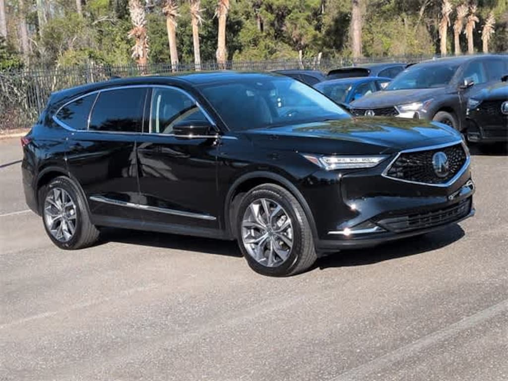 This 2024 Acura MDX Technology in Black, features 12 Speakers, 3rd row seats: split-bench, 4-Wheel Disc Brakes, 4.17 Axle Ratio, A/V remote: CabinControl, ABS brakes, Air Conditioning, Alloy wheels, AM/FM radio: SiriusXM, Anti-whiplash front head restraints, Apple CarPlay/Android Auto, Audio memory, Auto High-beam Headlights, Auto tilt-away steering wheel, Auto-dimming Rear-View mirror, Automatic temperature control, Brake assist, Bumpers: body-color, Compass, Delay-off headlights, Driver door bin, Driver vanity mirror, Dual front impact airbags, Dual front side impact airbags, Electronic Stability Control, Emergency communication system: AcuraLink, Exterior Parking Camera Rear, Four wheel independent suspension, Front anti-roll bar, Front Bucket Seats, Front Center Armrest, Front dual zone A/C, Front reading lights, Fully automatic headlights, Garage door transmitter: HomeLink, Heated door mirrors, Heated front seats, Heated Front Sport Seats, HVAC memory, Illuminated entry, Knee airbag, Lane departure: Lane Keeping Assist System (LKAS) active, Leather steering wheel, Low tire pressure warning, Memory seat, Navigation system: Acura Navigation System with 3D View, Occupant sensing airbag, Outside temperature display, Overhead airbag, Overhead console, Panic alarm, Passenger door bin, Passenger vanity mirror, Perforated Premium Milano Leather Trimmed Seats, Power door mirrors, Power driver seat, Power Liftgate, Power moonroof, Power passenger seat, Power steering, Power windows, Premium audio system: Acura/ELS Surround, Radio data system, Radio: ELS Studio Premium Audio System, Rain sensing wipers, Rear air conditioning, Rear anti-roll bar, Rear reading lights, Rear seat center armrest, Rear window defroster, Rear window wiper, Remote keyless entry, Security system, Speed control, Speed-sensing steering, Speed-Sensitive Wipers, Split folding rear seat, Spoiler, Steering wheel memory, Steering wheel mounted audio controls, Tachometer, Telescoping steering wheel, Tilt steering wheel, Traction control, Trip computer, Turn signal indicator mirrors, Variably intermittent wipers, and Wheels: 20 x 9J Aluminum Alloy: