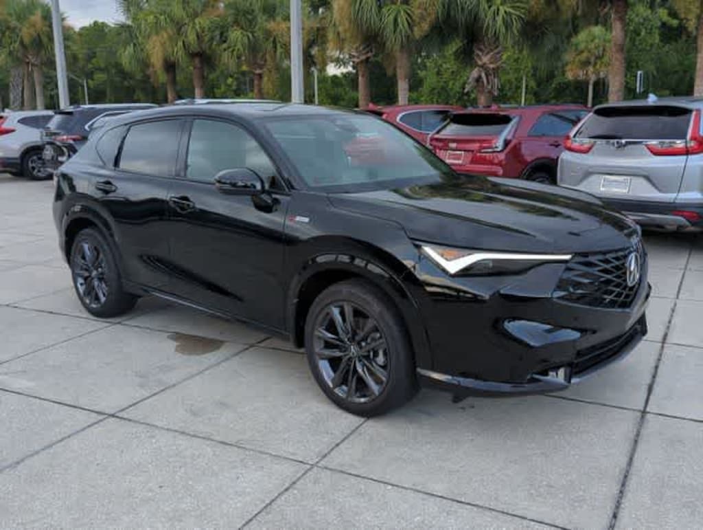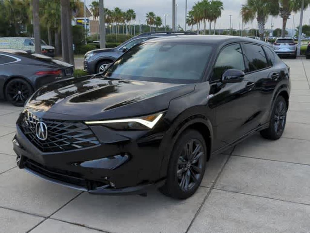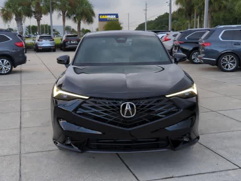 This 2025 Acura ADX A-Spec Package in Crystal Black Pearl, features 4-Wheel Disc Brakes, 8 Speakers, ABS brakes, Air Conditioning, Alloy wheels, AM/FM radio, Apple CarPlay/Android Auto, Auto High-beam Headlights, Auto-dimming Rear-View mirror, Automatic temperature control, Brake assist, Bumpers: body-color, Delay-off headlights, Driver door bin, Driver vanity mirror, Dual front impact airbags, Dual front side impact airbags, Electronic Stability Control, Emergency communication system: AcuraLink, Exterior Parking Camera Rear, Four wheel independent suspension, Front anti-roll bar, Front Bucket Seats, Front Center Armrest, Front dual zone A/C, Front fog lights, Front reading lights, Fully automatic headlights, Heated door mirrors, Heated front seats, Illuminated entry, Knee airbag, Lane departure: Lane Keeping Assist System (LKAS) active, Leather Shift Knob, Leather steering wheel, Low tire pressure warning, Occupant sensing airbag, Outside temperature display, Overhead airbag, Overhead console, Panic alarm, Passenger door bin, Passenger vanity mirror, Power door mirrors, Power driver seat, Power Liftgate, Power moonroof: Panoramic, Power passenger seat, Power steering, Power windows, Radio data system, Radio: AM/FM Acura Premium Audio System, Rear anti-roll bar, Rear reading lights, Rear seat center armrest, Rear side impact airbag, Rear window defroster, Rear window wiper, Remote keyless entry, Security system, Speed control, Speed-sensing steering, Split folding rear seat, Spoiler, Sport steering wheel, Steering wheel mounted audio controls, Tachometer, Telescoping steering wheel, Tilt steering wheel, Traction control, Trip computer, Turn signal indicator mirrors, Variably intermittent wipers, Ventilated front seats, and Wheels: 19 x 8J Aluminum Alloy: