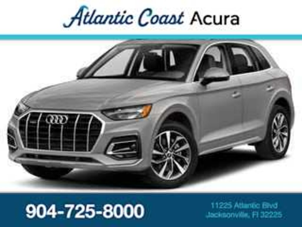 This 2021 Audi Q5 45 Premium in , features 10 Speakers, 4-Wheel Disc Brakes, 5.302 Axle Ratio, ABS brakes, Air Conditioning, Alloy wheels, AM/FM radio, Auto High-beam Headlights, Auto-dimming Rear-View mirror, Automatic temperature control, Brake assist, Bumpers: body-color, Compass, Delay-off headlights, Driver door bin, Driver vanity mirror, Dual front impact airbags, Dual front side impact airbags, Electronic Stability Control, Emergency communication system: Audi connect CARE, Exterior Parking Camera Rear, Four wheel independent suspension, Front anti-roll bar, Front Bucket Seats, Front Center Armrest, Front dual zone A/C, Front fog lights, Front reading lights, Garage door transmitter: HomeLink, Genuine wood console insert, Genuine wood dashboard insert, Genuine wood door panel insert, Heated 8-Way Power Front Bucket Seats, Heated door mirrors, Heated front seats, Illuminated entry, Leather Seating Surfaces, Leather Shift Knob, Low tire pressure warning, Occupant sensing airbag, Outside temperature display, Overhead airbag, Overhead console, Panic alarm, Passenger door bin, Passenger vanity mirror, Power door mirrors, Power driver seat, Power Liftgate, Power passenger seat, Power steering, Power windows, Radio data system, Radio: Audi Sound System, Rain sensing wipers, Rear air conditioning, Rear anti-roll bar, Rear fog lights, Rear reading lights, Rear seat center armrest, Rear window defroster, Rear window wiper, Remote keyless entry, Roof rack, Security system, Speed control, Speed-sensing steering, Speed-Sensitive Wipers, Split folding rear seat, Spoiler, Steering wheel mounted audio controls, Tachometer, Telescoping steering wheel, Tilt steering wheel, Traction control, Trip computer, Turn signal indicator mirrors, Variably intermittent wipers, and Wheels: 18 5-Arm-Star Design: