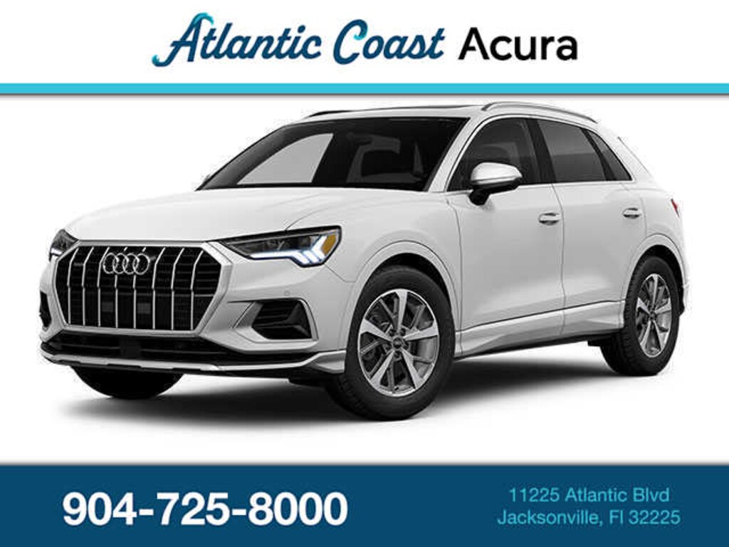 This 2023 Audi Q3 Premium in White, features 10 Speakers, 3.33 Axle Ratio, 4-Wheel Disc Brakes, ABS brakes, Air Conditioning, Alloy wheels, AM/FM radio, Audi smartphone interface (Apple CarPlay/Android Auto), Auto High-beam Headlights, Automatic temperature control, Brake assist, Bumpers: body-color, Delay-off headlights, Driver door bin, Driver vanity mirror, Dual front impact airbags, Dual front side impact airbags, Electronic Stability Control, Emergency communication system: Audi connect CARE, Exterior Parking Camera Rear, Four wheel independent suspension, Front anti-roll bar, Front Bucket Seats, Front Center Armrest, Front dual zone A/C, Front fog lights, Front reading lights, Fully automatic headlights, Heated door mirrors, Heated Front Bucket Seats, Heated front seats, Illuminated entry, Knee airbag, Leather Seating Surfaces, Leather Shift Knob, Leather steering wheel, Low tire pressure warning, Occupant sensing airbag, Outside temperature display, Overhead airbag, Overhead console, Panic alarm, Passenger door bin, Passenger vanity mirror, Power door mirrors, Power driver seat, Power Liftgate, Power moonroof: Panoramic, Power passenger seat, Power steering, Power windows, Radio data system, Radio: Audi Sound System, Rain sensing wipers, Rear air conditioning, Rear anti-roll bar, Rear fog lights, Rear reading lights, Rear seat center armrest, Rear window defroster, Rear window wiper, Remote keyless entry, Speed control, Speed-sensing steering, Split folding rear seat, Spoiler, Steering wheel mounted audio controls, Tachometer, Telescoping steering wheel, Tilt steering wheel, Traction control, Trip computer, Turn signal indicator mirrors, Variably intermittent wipers, and Wheels: 18 5-Y-Spoke Design: