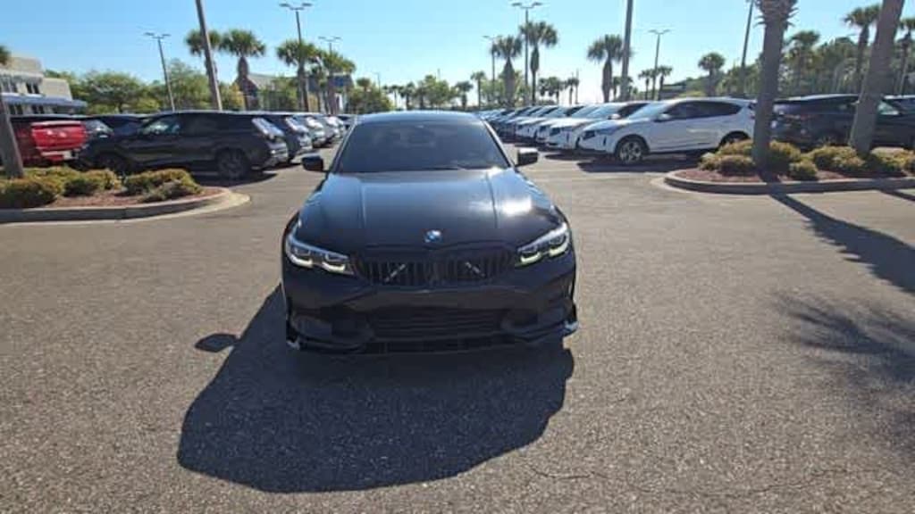This 2019 BMW 3 Series 330i xDrive in Jet Black, features Connected Package Pro, 10 Speakers, 4-Wheel Disc Brakes, ABS brakes, Active Driving Assistant, Air Conditioning, Alloy wheels, AM/FM radio, Apple CarPlay Compatibility, Auto-dimming door mirrors, Auto-dimming Rear-View mirror, Automatic temperature control, Brake assist, Bumpers: body-color, Comfort Access Keyless Entry, Delay-off headlights, Driver door bin, Driver vanity mirror, Dual front impact airbags, Dual front side impact airbags, Electronic Stability Control, Emergency communication system: BMW Assist eCall, Exterior Parking Camera Rear, Four wheel independent suspension, Front anti-roll bar, Front Bucket Seats, Front Center Armrest, Front dual zone A/C, Front reading lights, Fully automatic headlights, Garage door transmitter, Genuine wood console insert, Genuine wood dashboard insert, Hands-Free Bluetooth & USB Audio Connection, HD Radio, Heated door mirrors, Heated Front Seats, Heated Steering Wheel, Hi-Fi Sound System, Illuminated entry, Leather Shift Knob, Leather steering wheel, LED Headlights w/Cornering Lights, Live Cockpit Pro, Low tire pressure warning, Lumbar Support, Memory seat, Occupant sensing airbag, Outside temperature display, Overhead airbag, Panic alarm, Park Distance Control, Passenger door bin, Passenger vanity mirror, Power door mirrors, Power driver seat, Power Front Seats, Power moonroof, Power passenger seat, Power steering, Power windows, Radio data system, Radio: AM/FM Audio System, Rain sensing wipers, Rear air conditioning, Rear anti-roll bar, Rear reading lights, Rear seat center armrest, Rear window defroster, Remote keyless entry, Security system, SensaTec Upholstery, SiriusXM Satellite Radio, Speed control, Speed-sensing steering, Speed-Sensitive Wipers, Split folding rear seat, Sport Seats, Sport steering wheel, Steering wheel mounted audio controls, Tachometer, Telescoping steering wheel, Tilt steering wheel, Traction control, Trip computer, Turn signal indicator mirrors, Variably intermittent wipers, and Wheels: 18 x 7.5 V-Spoke Bi-Color Orbit Grey: