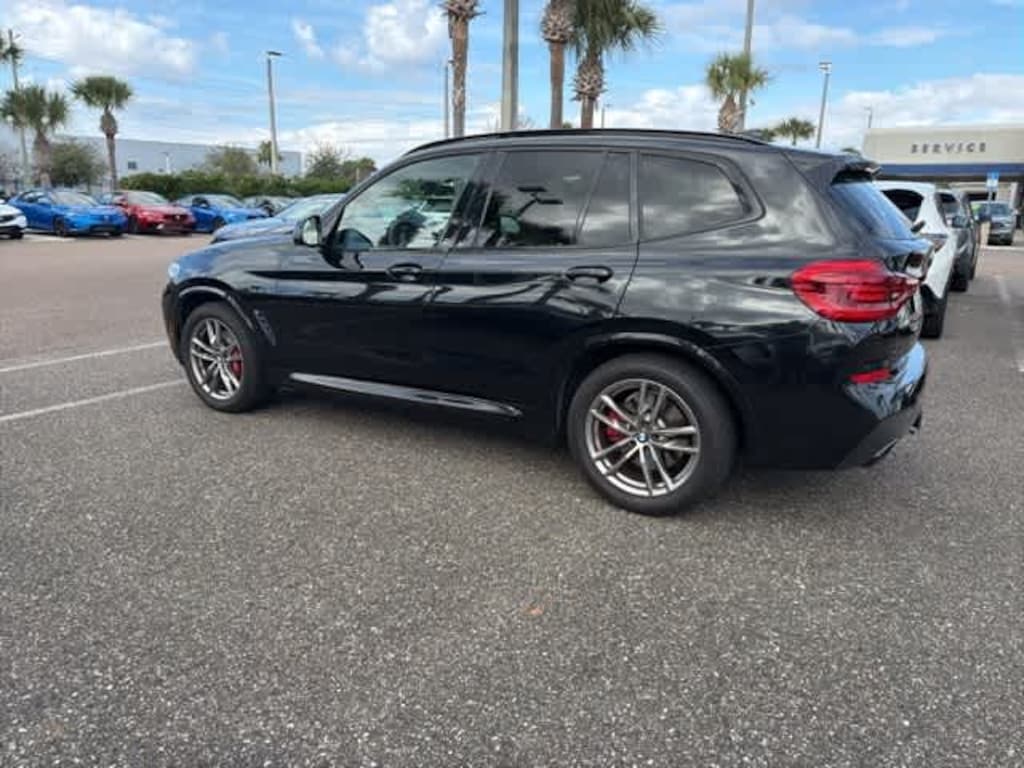 This 2021 BMW X3 M40i in Black Sapphire Metallic, features Connected Package Pro, Premium Package (Head-Up Display, Heated Front Seats, and Heated Steering Wheel), Shadowline Package (Extended Shadowline Trim), Wireless Charging (DISC) (Enhanced USB & Bluetooth (DISC)), 12 Speakers, 3.385 Axle Ratio, 4-Wheel Disc Brakes, ABS brakes, Air Conditioning, Alloy wheels, AM/FM radio: SiriusXM with 360L, Ambient Lighting, Apple CarPlay & Android Auto Compatibility, Auto High-beam Headlights, Auto-dimming door mirrors, Auto-dimming Rear-View mirror, Automatic temperature control, BMW Assist eCall, BMW TeleServices, Brake assist, Bumpers: body-color, ConnectedDrive Services, Dark Oak Wood Trim, Delay-off headlights, Driver door bin, Driver vanity mirror, Dual front impact airbags, Dual front side impact airbags, Electronic Stability Control, Emergency communication system: BMW Assist eCall, Exterior Parking Camera Rear, Four wheel independent suspension, Front anti-roll bar, Front Bucket Seats, Front Center Armrest, Front dual zone A/C, Front fog lights, Front reading lights, Fully automatic headlights, Garage door transmitter, harman/kardon Surround Sound System, Heated door mirrors, Hi-Fi Sound System, Illuminated entry, Knee airbag, Live Cockpit Pro w/Navigation, Low tire pressure warning, Lumbar Support, M Sport Brakes w/Red Calipers, Memory seat, Navigation System, Occupant sensing airbag, Outside temperature display, Overhead airbag, Panic alarm, Passenger door bin, Passenger vanity mirror, Power door mirrors, Power driver seat, Power Front Seats, Power Liftgate, Power moonroof, Power passenger seat, Power steering, Power windows, Radio Control US, Radio data system, Radio: AM/FM Stereo w/HD, Rain sensing wipers, Rear air conditioning, Rear anti-roll bar, Rear reading lights, Rear seat center armrest, Rear window defroster, Rear window wiper, Remote keyless entry, Roof rack: rails only, Security system, SensaTec Upholstery, SiriusXM Satellite Radio, SiriusXM w/360L, Speed control, Speed-sensing steering, Speed-Sensitive Wipers, Split folding rear seat, Spoiler, Sport Bucket Seats, Sport steering wheel, Steering wheel mounted audio controls, Tachometer, Telescoping steering wheel, Tilt steering wheel, Traction control, Trailer Hitch, Trip computer, Turn signal indicator mirrors, Variably intermittent wipers, Wheels: 19 x 7.5 M Double-Spoke (Style 698M), and WiFi Hotspot: