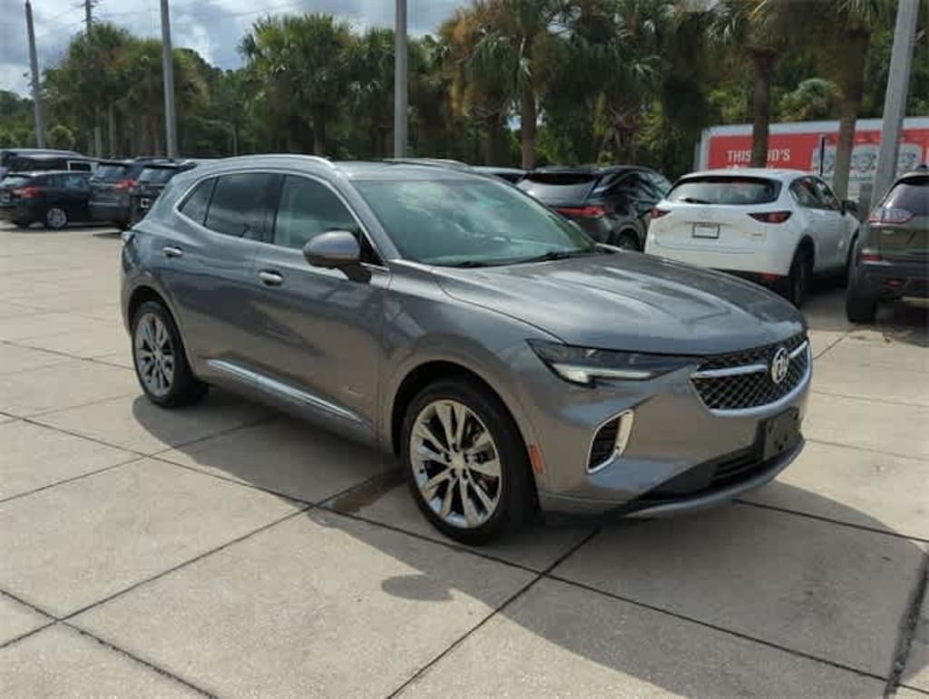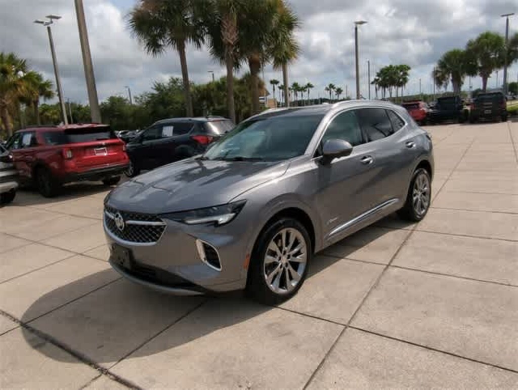 This 2021 Buick Envision Avenir in Satin Steel Metallic, features Preferred Equipment Group 1SU, 3.47 Final Drive Axle Ratio, 4-Wheel Disc Brakes, 8-Way Power Driver Seat Adjuster, 9 Speakers, ABS brakes, Air Conditioning, Alloy wheels, AM/FM radio: SiriusXM, Apple CarPlay/Android Auto, Auto High-beam Headlights, Auto-dimming door mirrors, Auto-dimming Rear-View mirror, Automatic temperature control, Bose Premium 9-Speaker Audio System Feature, Brake assist, Bumpers: body-color, Compass, Delay-off headlights, Driver 4-Way Power Lumbar Seat Adjuster, Driver door bin, Driver Seat Massage Control, Driver vanity mirror, Dual front impact airbags, Dual front side impact airbags, Electronic Stability Control, Emergency communication system: OnStar and Buick connected services capable, Four wheel independent suspension, Front anti-roll bar, Front Bucket Seats, Front Center Armrest, Front dual zone A/C, Front Passenger 4-Way Power Lumbar Seat Adjuster, Front Passenger 8-Way Power Seat Adjuster, Front reading lights, Fully automatic headlights, Garage door transmitter, HD Radio, Heads-Up Display, Heated door mirrors, Heated Driver & Front Passenger Seats, Heated front seats, Heated rear seats, Heated steering wheel, Illuminated entry, Knee airbag, Leather Shift Knob, Low tire pressure warning, Memory Card Receptacle Audio System Feature, Memory seat, Navigation System, Occupant sensing airbag, Outside temperature display, Overhead airbag, Overhead console, Panic alarm, Passenger door bin, Passenger vanity mirror, Perforated Leather-Appointed Seat Trim, Power door mirrors, Power driver seat, Power Liftgate, Power Panoramic Tilt-Sliding Moonroof, Power passenger seat, Power steering, Power windows, Radio data system, Radio: Buick Infotainment System AM/FM w/Nav, Rear anti-roll bar, Rear reading lights, Rear seat center armrest, Rear window defroster, Rear window wiper, Remote keyless entry, Roof rack: rails only, Security system, SiriusXM Radio, Speed control, Speed-sensing steering, Split folding rear seat, Spoiler, Steering wheel mounted audio controls, Tachometer, Telescoping steering wheel, Tilt steering wheel, Traction control, Trip computer, USB Charging-Only Ports, Variably intermittent wipers, Ventilated Driver & Front Passenger Seats, Ventilated front seats, Wheels: 20 Aluminum w/Avenir Pearl Nickel Finish, and Wireless Apple CarPlay/Wireless Android Auto:
