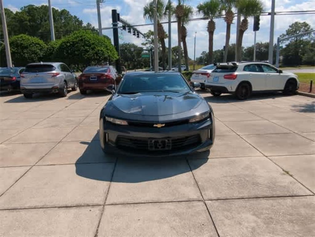 This 2018 Chevrolet Camaro 1LT in Nightfall Gray Metallic, features Preferred Equipment Group 1LT, 18 Silver-Painted Aluminum Wheels, 2 USB Ports & Auxiliary Input Jack, 4-Wheel Disc Brakes, 6 Speakers, 6-Speaker Audio System Feature, 6-Way Power Front Passenger Seat Adjuster, 8-Way Power Driver Seat Adjuster, ABS brakes, Air Conditioning, Alloy wheels, AM/FM radio: SiriusXM, Apple CarPlay/Android Auto, Automatic temperature control, Brake assist, Bumpers: body-color, Cloth Seat Trim, Compass, Delay-off headlights, Driver door bin, Driver vanity mirror, Dual front impact airbags, Dual front side impact airbags, Electronic Stability Control, Emergency communication system: OnStar Guidance, Exterior Parking Camera Rear, Four wheel independent suspension, Front anti-roll bar, Front Bucket Seats, Front Center Armrest, Front fog lights, Front License Plate Bracket, Front reading lights, Front Sport Bucket Seats, Fully automatic headlights, Illuminated entry, Knee airbag, Leather Shift Knob, Low tire pressure warning, Occupant sensing airbag, Overhead airbag, Panic alarm, Passenger door bin, Passenger vanity mirror, Power door mirrors, Power driver seat, Power passenger seat, Power steering, Power windows, Premium audio system: Chevrolet MyLink, Radio data system, Radio: AM/FM w/Chevrolet MyLink, Rear anti-roll bar, Rear window defroster, Remote keyless entry, Security system, SiriusXM Satellite Radio, Speed control, Speed-sensing steering, Steering wheel mounted audio controls, Tachometer, Telescoping steering wheel, Tilt steering wheel, Tire Inflation Kit, Traction control, Trip computer, Variably intermittent wipers, and Voltmeter: