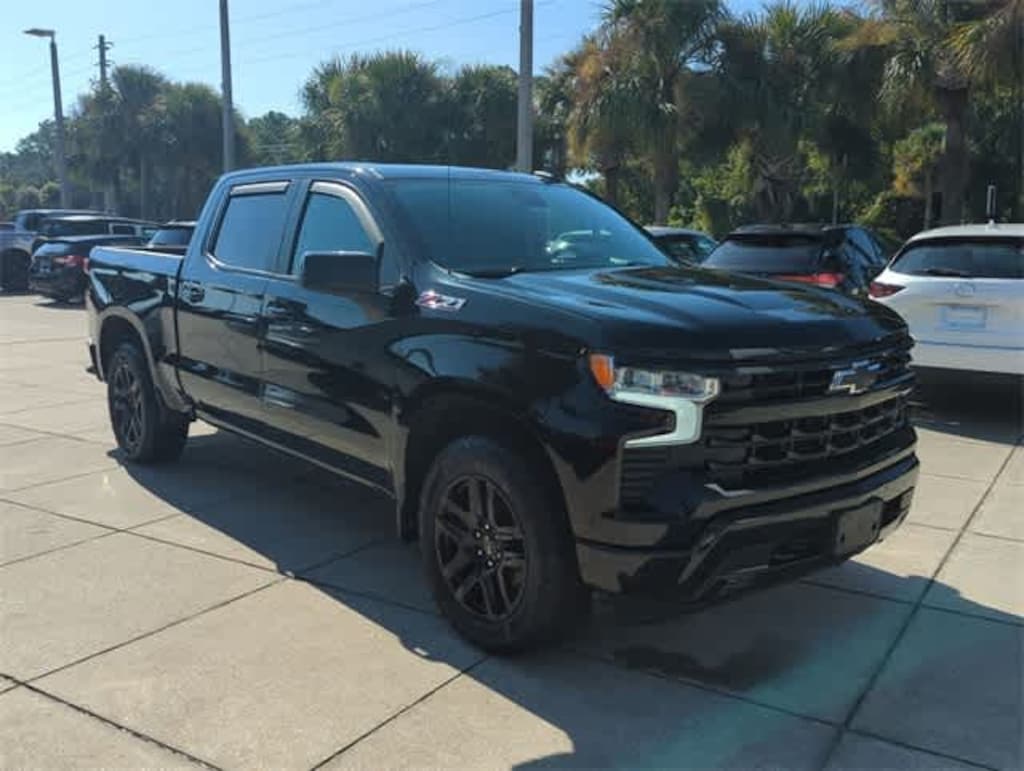 This 2022 Chevrolet Silverado 1500 RST in Black, features All Star Edition Plus (Wheels: 20 x 9 Painted Aluminum), Convenience Package (10-Way Power Driver Seat w/Lumbar, 120-Volt Bed Mounted Power Outlet, 120-Volt Instrument Panel Power Outlet, Dual Rear USB Ports (Charge Only), Dual-Zone Automatic Climate Control, Electric Rear-Window Defogger, Heated Driver & Front Outboard Passenger Seats, Heated Steering Wheel, Keyless Open & Start, Leather Wrapped Steering Wheel, Manual Tilt/Telescoping Steering Column, Remote Vehicle Starter System, and Theft Deterrent System (Unauthorized Entry)), Convenience Package II (Hitch Guidance w/Hitch View, Integrated Trailer Brake Controller, Power Sliding Rear Window w/Rear Defogger, Premium Bose 7-Speaker Sound System, Trailering App, and Universal Home Remote), Dark Essentials Package (LPO) (Black Name Plates (LPO)), High Capacity Suspension Package, Preferred Equipment Group 1SP (12.3 Multicolor Reconfigurable Digital Display, 6-Speaker Audio System, All-Star Edition, Auto-Locking Rear Differential, Bluetoothî For Phone, Chevrolet Connected Access Capable, Color-Keyed Carpeting Floor Covering, Compass, Deep-Tinted Glass, Electrical Steering Column Lock, Electronic Cruise Control, EZ Lift Power Lock & Release Tailgate, Front Frame-Mounted Black Recovery Hooks, Front LED Fog Lamps, Front Rubberized Vinyl Floor Mats, HD Rear Vision Camera, Heated Power-Adjustable Outside Mirrors, High Gloss Black Mirror Caps, Inside Rear-View Mirror w/Tilt, LED Cargo Area Lighting, OnStar & Chevrolet Connected Services Capable, Power Front Windows w/Driver Express Up/Down, Power Front Windows w/Passenger Express Down, Power Rear Windows w/Express Down, Rear 60/40 Folding Bench Seat (Folds Up), Rear Rubberized-Vinyl Floor Mats, SiriusXM w/360L, Standard Tailgate, Steering Wheel Audio Controls, Wi-Fi Hot Spot Capable, and Wireless Phone Projection), Protection Package (Chevytec Spray-On Black Bedliner and Rear Wheelhouse Liners), Standard Suspension Package, Trailering Package (Hitch Guidance), Z71 Off-Road & Protection Package (All-Weather Floor Liner (LPO) (AAK)), Z71 Off-Road Package (Dual Exhaust w/Polished Outlets, Heavy-Duty Air Filter, Hill Descent Control, and Off-Road Suspension), 2 USB Data Ports, 220 Amp Alternator, 3.23 Rear Axle Ratio, 4-Wheel Disc Brakes, 40/20/40 Front Split-Bench Seat, 6 Speakers, ABS brakes, Adaptive Cruise Control, Air Conditioning, Alloy wheels, AM/FM radio: SiriusXM with 360L, Apple CarPlay/Android Auto, Auto High-beam Headlights, Automatic Emergency Braking, Automatic temperature control, Black Tailgate CHEVROLET Lettering (LPO), Brake assist, Bumpers: body-color, Cloth Seat Trim, Delay-off headlights, Driver door bin, Driver vanity mirror, Dual front impact airbags, Dual front side impact airbags, Electronic Stability Control, Electronic Transmission Range Selector Shifter, Floor Mounted Center Console, Following Distance Indicator, Forward Collision Alert, Front anti-roll bar, Front Bucket Seats, Front Center Armrest w/Storage, Front dual zone A/C, Front fog lights, Front License Plate Kit, Front Pedestrian Braking, Front reading lights, Front wheel independent suspension, Fully automatic headlights, Heated door mirrors, Heated front seats, Heated steering wheel, Illuminated entry, IntelliBeam Automatic High Beam On/Off, Lane Keep Assist w/Lane Departure Warning, Low tire pressure warning, Not Equipped w/Dynamic Fuel Management, Not Equipped w/Steering Column Lock, Occupant sensing airbag, Outside temperature display, Overhead airbag, Overhead console, Panic alarm, Passenger door bin, Passenger vanity mirror, Power door mirrors, Power driver seat, Power steering, Power Tailgate, Power windows, Premium audio system: Chevrolet Infotainment 3 Premium, Radio data system, Radio: Chevrolet Infotainment 3 Premium System, Rear reading lights, Rear step bumper, Rear window defroster, Remote keyless entry, Security system, Speed control, Speed-sensing steering, Split folding r