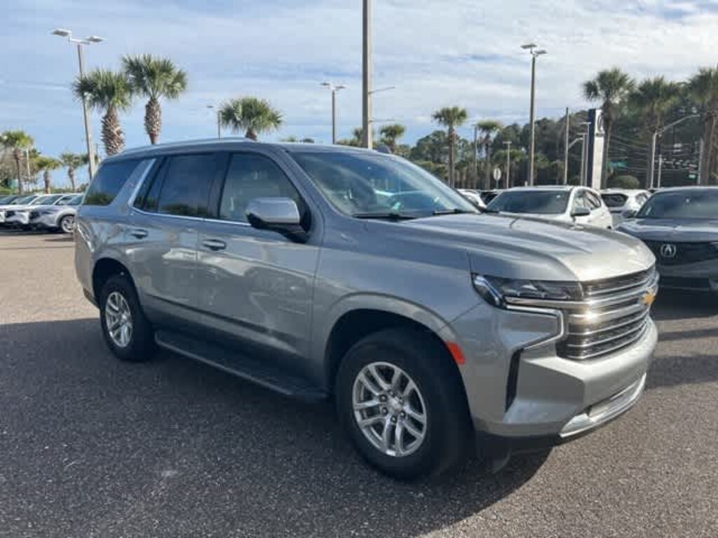 This 2023 Chevrolet Tahoe LT in Sterling Gray Metallic, features Preferred Equipment Group 1LT (1st & 2nd Row Color-Keyed Carpeted Floor Mats, Auto-Dimming Inside Rear-View Mirror, Bose 9-Speaker Stereo Audio System Feature, Bright Front & Rear Door Sill Plates, Color-Keyed Carpeting Floor Covering, Driver & Front Outboard Passenger Airbags, Enhanced Driver Information Center, Floor Console w/Storage Area, Hands-Free Rear Power Programmable Liftgate, Infotainment Display, LED Daytime Running Lamps, Memory Settings for Driver, Remote Start, SiriusXM Radio w/360L, Universal Home Remote, Wireless Charging, and Wrapped Steering Wheel), 10-Way Power Driver & Passenger Seat Adjusters, 2nd Row Manual Bucket Seats, 3.23 Rear Axle Ratio, 3rd row seats: split-bench, 4-Wheel Disc Brakes, 9 Speakers, ABS brakes, Air Conditioning, Alloy wheels, AM/FM radio: SiriusXM with 360L, Apple CarPlay/Android Auto, Auto High-beam Headlights, Auto-dimming Rear-View mirror, Automatic temperature control, Brake assist, Bumpers: body-color, Compass, Delay-off headlights, Deleted 3 Years of Remote Access, Driver door bin, Driver vanity mirror, Dual front impact airbags, Dual front side impact airbags, Electronic Stability Control, Emergency communication system: OnStar and Chevrolet connected services capable, Four wheel independent suspension, Front anti-roll bar, Front Bucket Seats, Front Center Armrest, Front dual zone A/C, Front High-Back Reclining Bucket Seats, Front reading lights, Fully automatic headlights, Garage door transmitter, Heated door mirrors, Heated Driver & Front Passenger Seats, Heated front seats, Illuminated entry, Leather-Appointed Seat Trim, Low tire pressure warning, Memory seat, Navigation System, Occupant sensing airbag, Outside temperature display, Overhead airbag, Overhead console, Panic alarm, Passenger door bin, Passenger vanity mirror, Power door mirrors, Power driver seat, Power Liftgate, Power passenger seat, Power steering, Power windows, Premium audio system: Chevrolet Infotainment 3 Premium, Premium Smooth Ride Suspension, Radio: Chevrolet Infotainment 3 Premium System, Rain sensing wipers, Rear air conditioning, Rear anti-roll bar, Rear reading lights, Rear seat center armrest, Rear window defroster, Rear window wiper, Remote keyless entry, Roof rack: rails only, Security system, Speed control, Speed-sensing steering, Split folding rear seat, Spoiler, Steering wheel mounted audio controls, Tachometer, Telescoping steering wheel, Tilt steering wheel, Traction control, Trip computer, Variably intermittent wipers, Voltmeter, and Wheels: 18 x 8.5 Bright Silver Painted Aluminum: