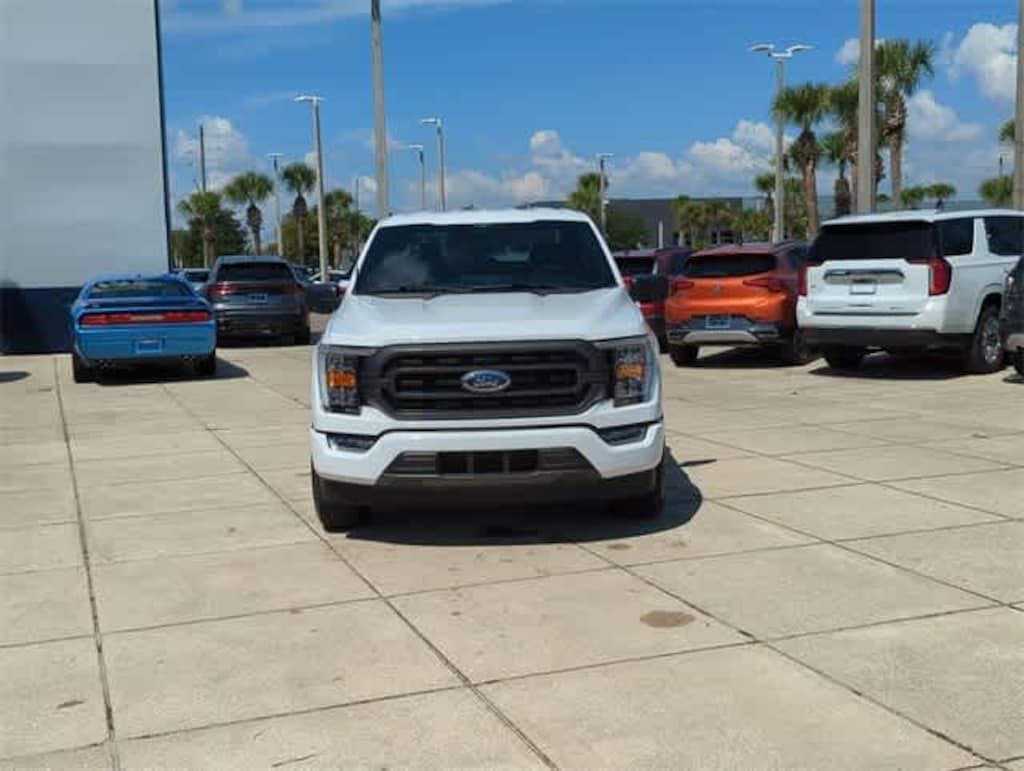 This 2023 Ford F-150 XLT in Oxford White, features Bed Utility Package (BoxLink, LED Box Lighting, Tailgate Step w/Tailgate Work Surface, and Zone Lighting), Equipment Group 302A High (10-Way Power Driver & Passenger Seats, 8 Productivity Screen in Instrument Cluster, Auto-Dimming Rear-View Mirror, Class IV Trailer Hitch Receiver, Dual Zone Electronic Automatic Temperature Control, Heated Front Seats, Intelligent Access w/Push Button Start, LED Reflector Headlamps, LED Sideview Mirror Spotlights, Onboard 400W Outlet, Power Glass Heated Sideview Mirrors, Radio: AM/FM SiriusXM w/360L, Rear Under-Seat Storage, Remote Start System w/Remote Tailgate Release, SecuriCode Drivers Side Keyless-Entry Keypad, SYNC 4 w/Enhanced Voice Recognition, and Wrapped Steering Wheel), Trailer Tow Package (Integrated Trailer Brake Controller and Pro Trailer Backup Assist & Pro Trailer Hitch Assist), XLT Chrome Appearance Package (2-Bar Style Grille w/Chrome 2 Minor Bars, Bright Polished Step Bars, Chrome Door & Tailgate Handles w/Body-Color Bezel, Chrome Single-Tip Exhaust, and Wheels: 18 Chrome-Like PVD), XLT Sport Appearance Package (Accent-Color Step Bars, Black 2-Bar Style Grille w/Black Surround/Accents, Body-Color Door & Tailgate Handles, Body-Color Front & Rear Bumpers, Box Side Decals, Unique Sport Cloth 40/Console/40 Front-Seats, and Wheels: 18 6-Spoke Machined Aluminum), 3.55 Axle Ratio, 4-Wheel Disc Brakes, 6 Speakers, ABS brakes, Air Conditioning, Alloy wheels, AM/FM radio, Auto High-beam Headlights, Auto Start-Stop Removal (DISC), Black Tailgate Decals, Brake assist, Bumpers: chrome, Cloth 40/20/40 Front Seat, Compass, Delay-off headlights, Driver door bin, Driver vanity mirror, Dual front impact airbags, Dual front side impact airbags, Electronic Locking w/3.55 Axle Ratio, Electronic Stability Control, Emergency communication system: SYNC 4 911 Assist, Exterior Parking Camera Rear, First Aid Kit w/Ford Logo, Front anti-roll bar, Front Center Armrest w/Storage, Front fog lights, Front reading lights, Front wheel independent suspension, Fully automatic headlights, Heated door mirrors, Illuminated entry, Low tire pressure warning, Occupant sensing airbag, Outside temperature display, Overhead airbag, Overhead console, Panic alarm, Passenger door bin, Passenger vanity mirror, Power door mirrors, Power steering, Power windows, Radio data system, Radio: AM/FM Stereo w/6 Speakers, Rear reading lights, Rear step bumper, Rear window defroster, Remote keyless entry, Remote Start System, Security system, Speed control, Speed-sensing steering, Split folding rear seat, Steering wheel mounted audio controls, SYNC 4, Tachometer, Telescoping steering wheel, Tilt steering wheel, Traction control, Trip computer, Variably intermittent wipers, Voltmeter, Wheels: 17 Silver Painted Aluminum, and Wheels: 20 6-Spoke Dark Alloy Painted Aluminum: